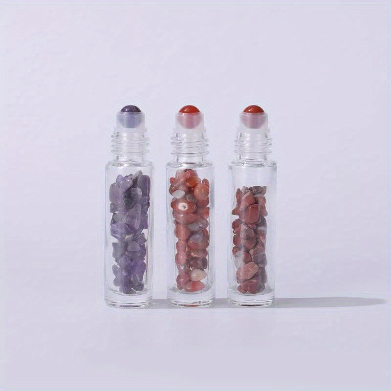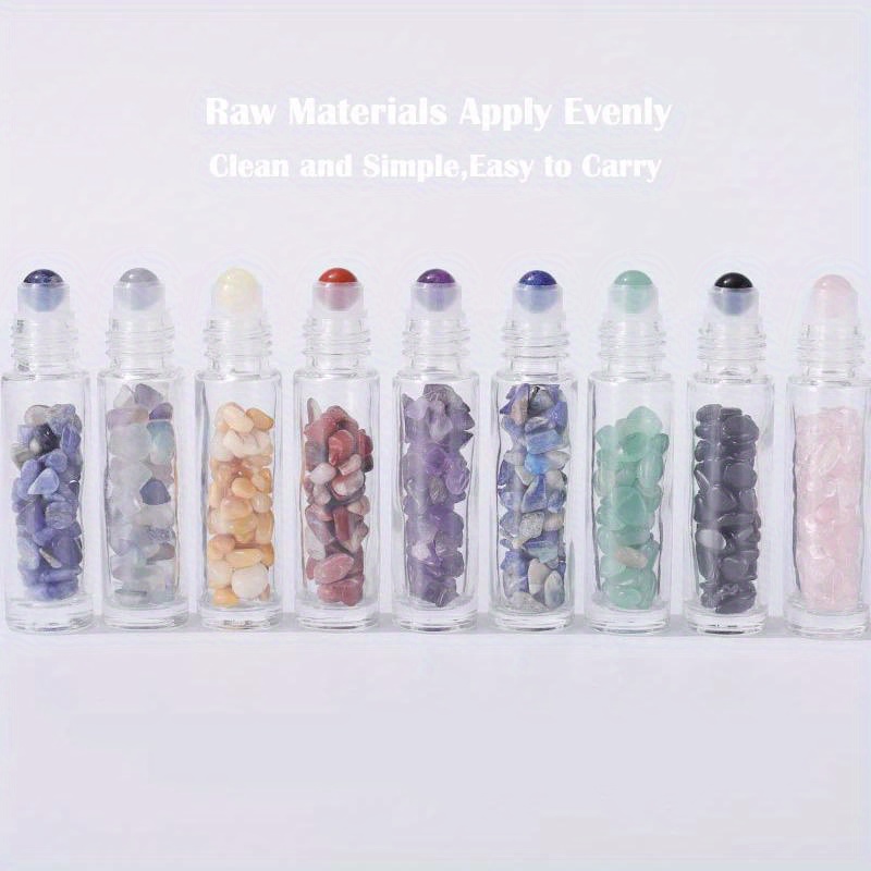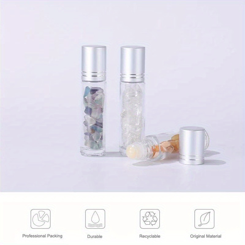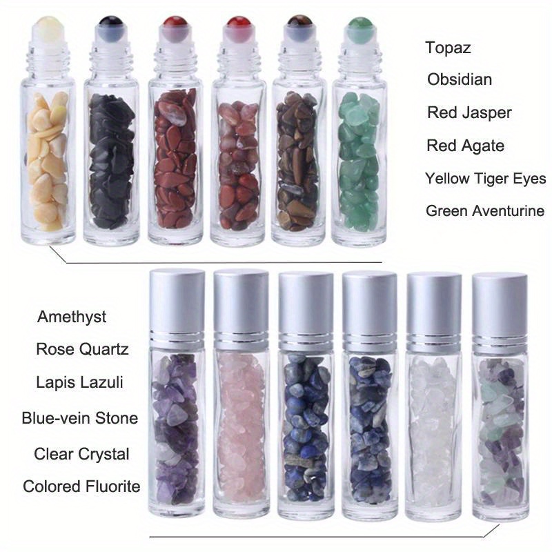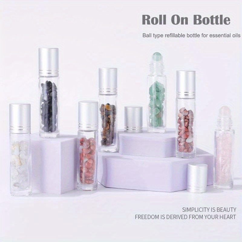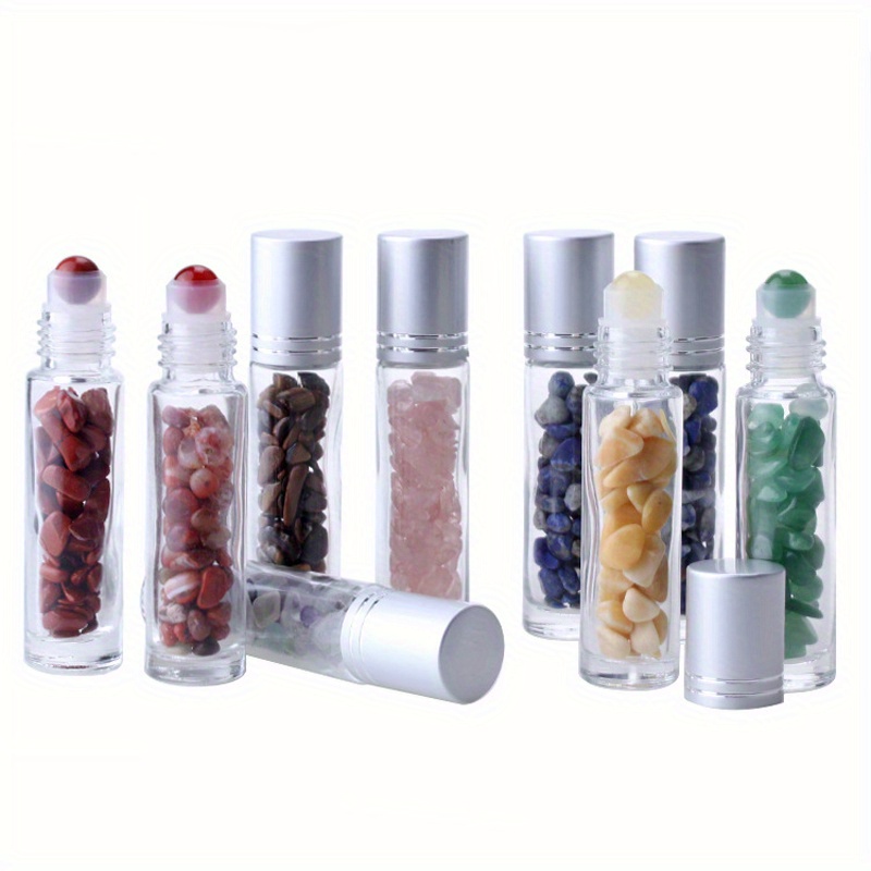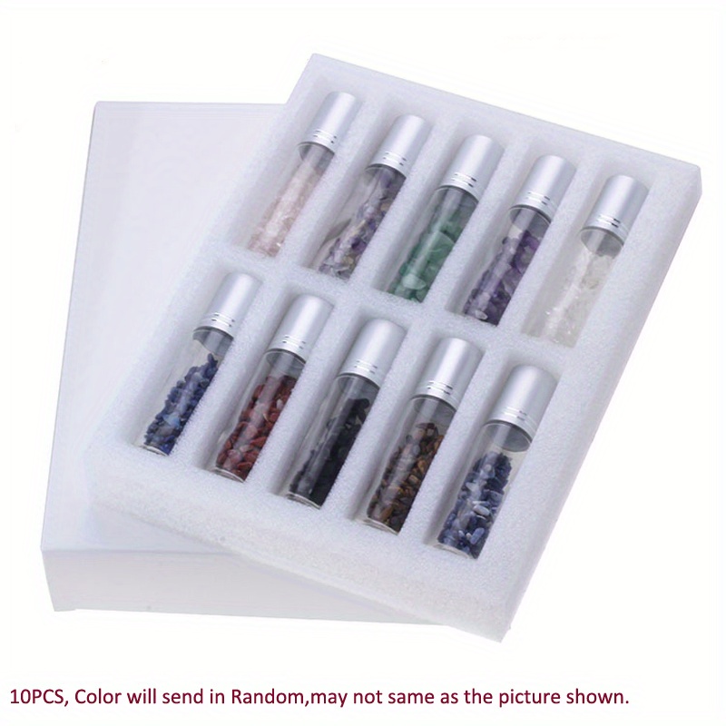10pcs Essential Oil Bottles Roll On Roller Ball Crystal Chips Semiprecious Stones Bottle 10ml Refillable Perfume Empty Container