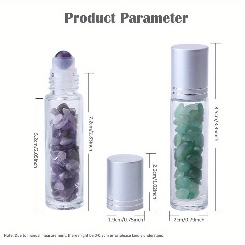Note:1.Each gemstone roller balls corresponds relevant mini crystal stone chips which in bottles. These crystal stone chips are sterilized in boiling water and then dried by the wind. Please be note natural stones have color difference, they can't be avoid.