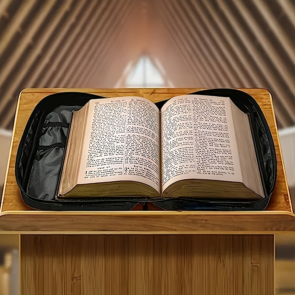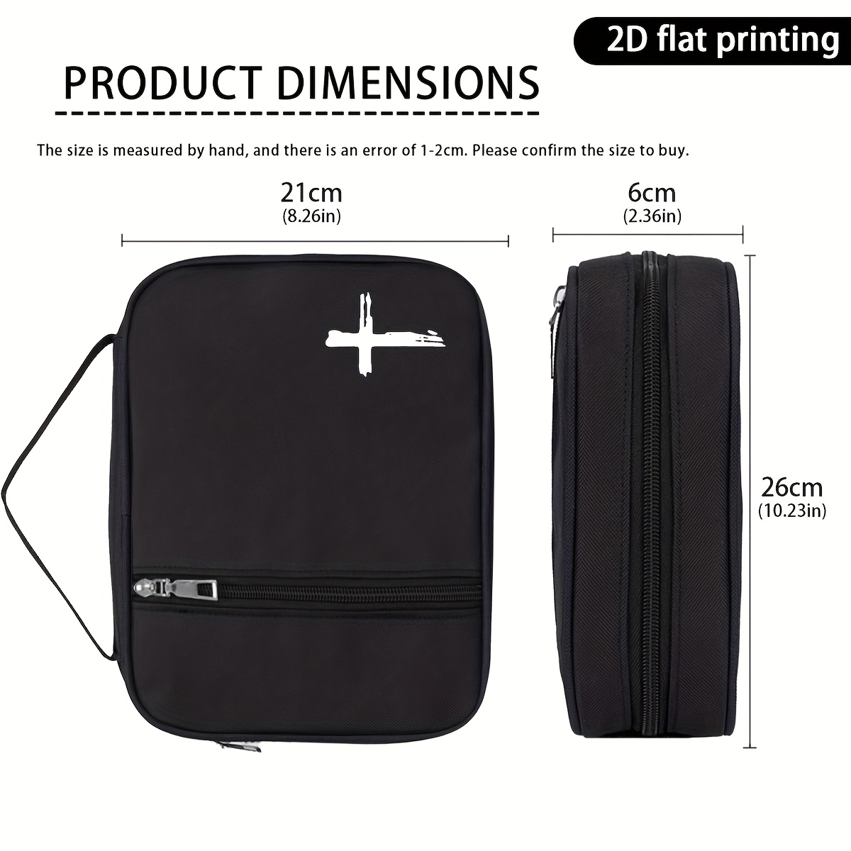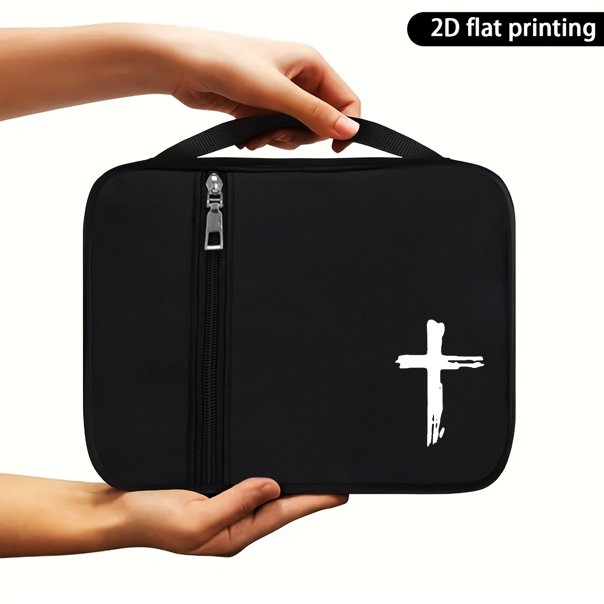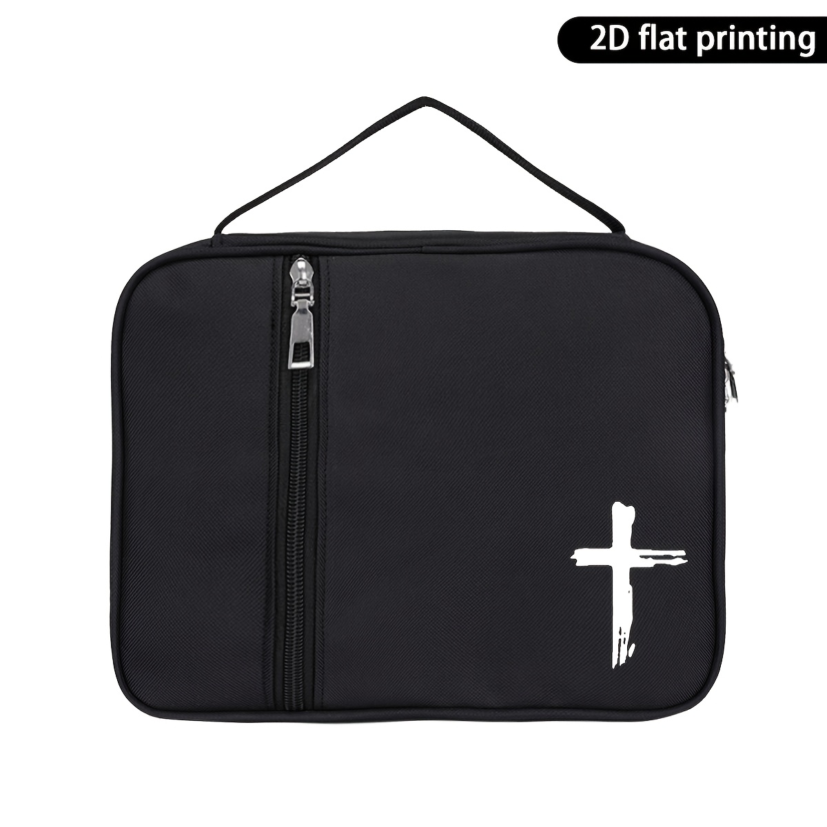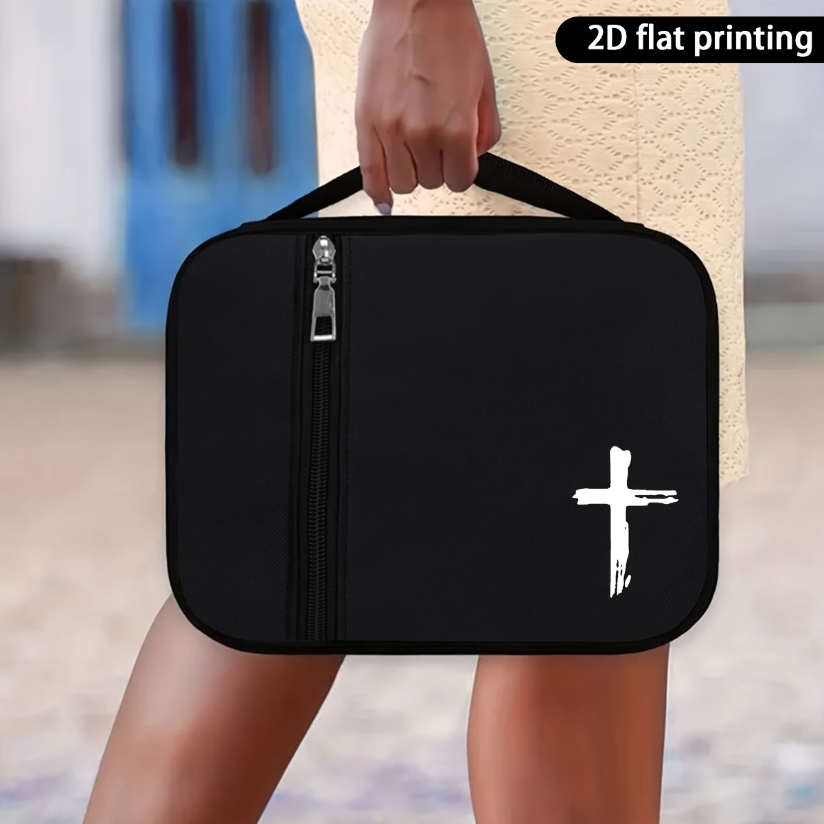 1pc Black Fashionable Simple Versatile Right-Hand Cross Print Bible Bag |, Large