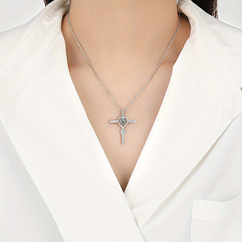 1pc Hypoallergenic Alloy Women's Chain Necklace with Cross Pendant - Elegant Syn
