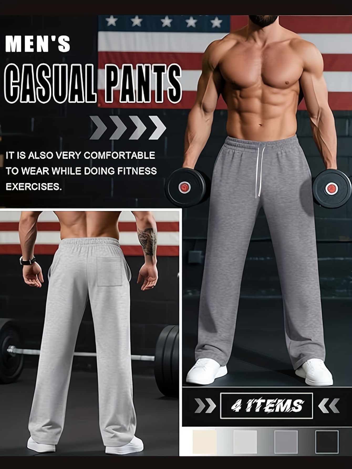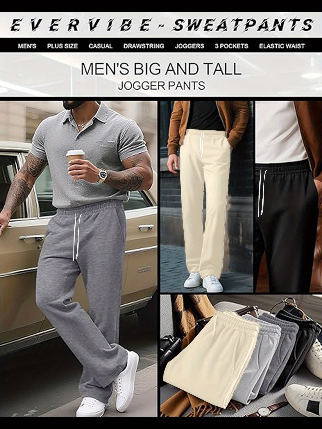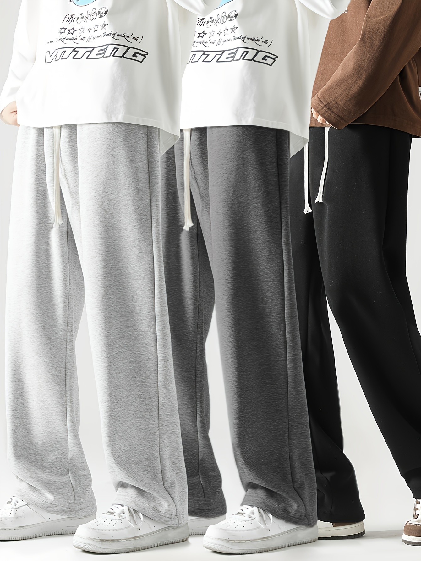 3 Men'S Casual Drawstring Sweatpants - Multi-functional Solid Color, Loose Fit,