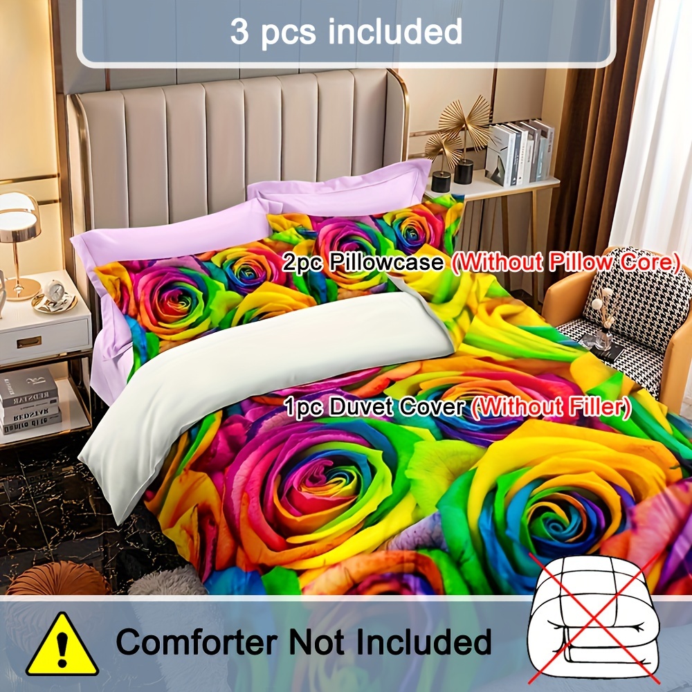 · Vibrant and colorful: This bedding set features a stunning rainbow rose floral design that will instantly brighten up your bedroom.
