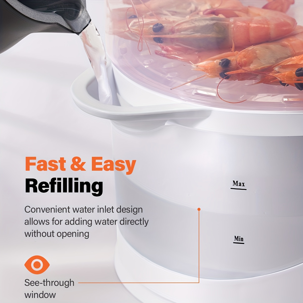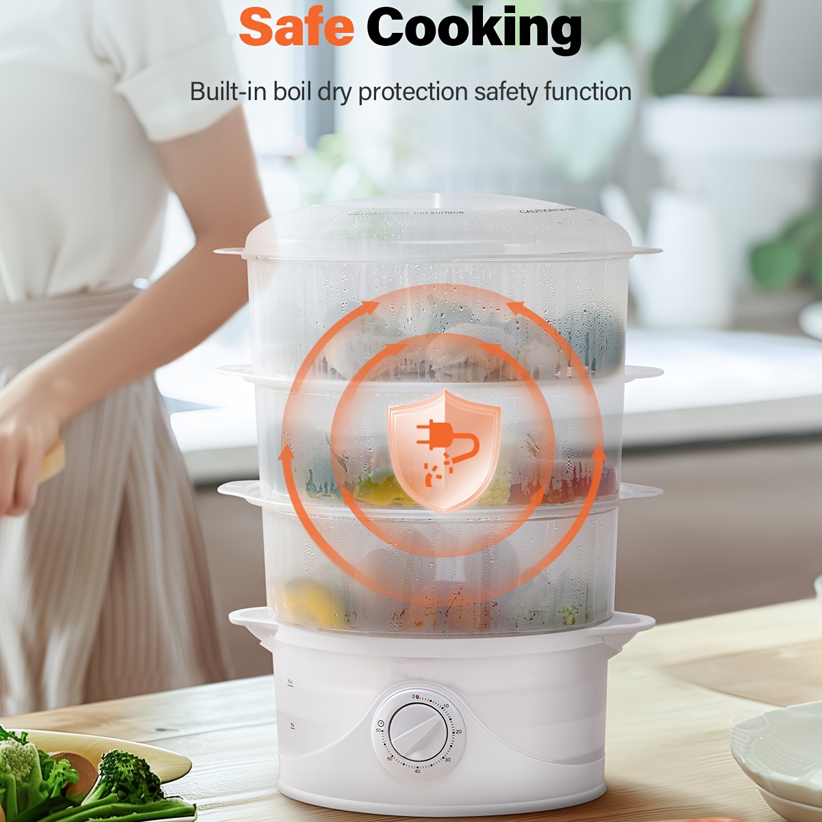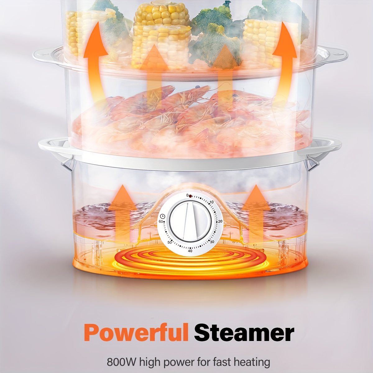 3-Tier Electric Food Steamer with 800W High-Power Fast Cooking, 9.6QT Large Capa