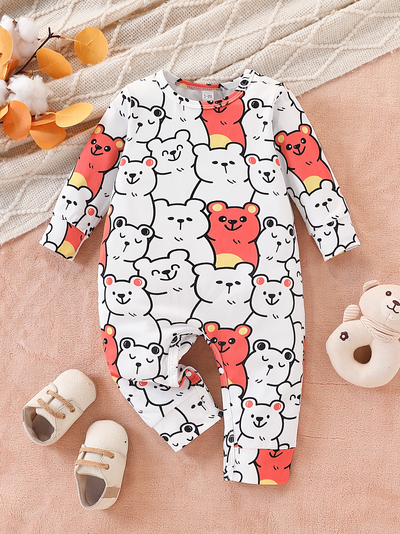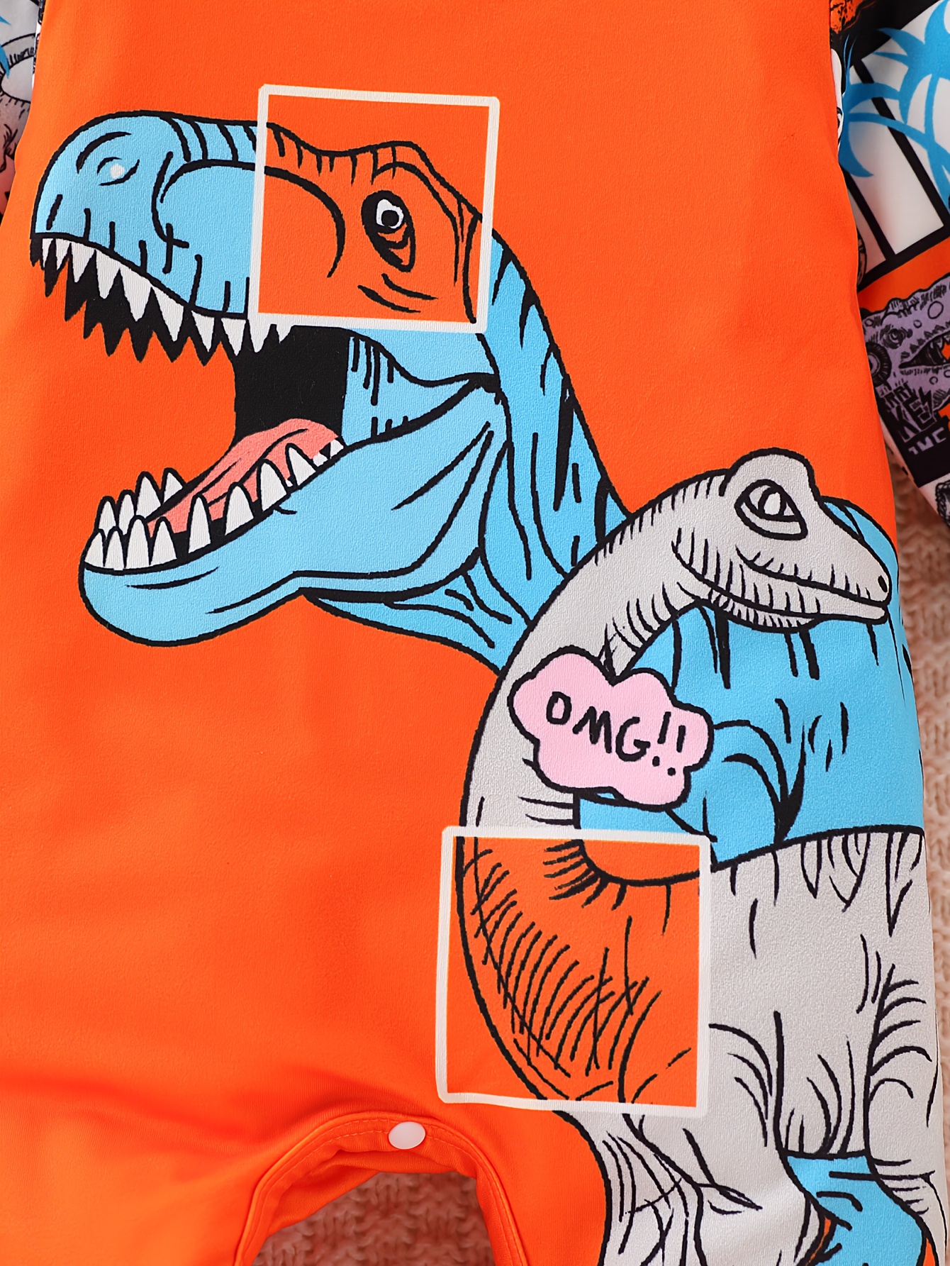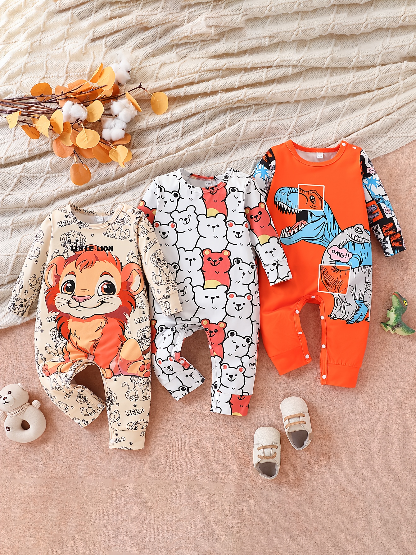 3pcs Baby Boy Romper Jumpsuit Soft Long Sleeve Cartoon Print, Infant Boy Clothes