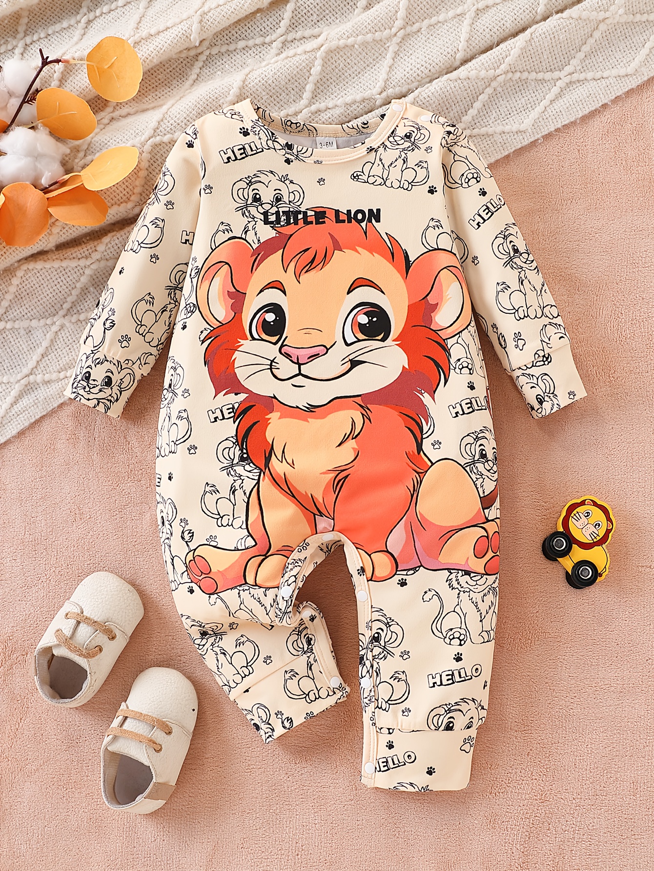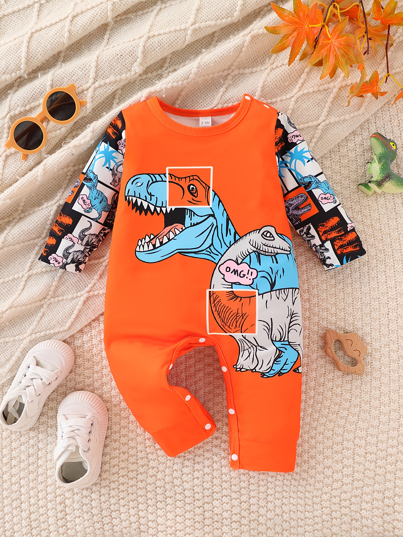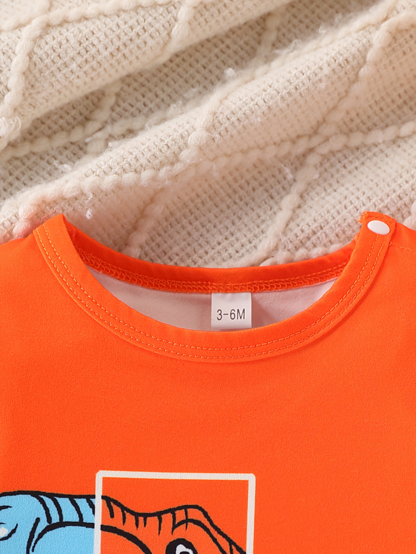 3pcs Baby Boy Romper Jumpsuit Soft Long Sleeve Cartoon Print, Infant Boy Clothes