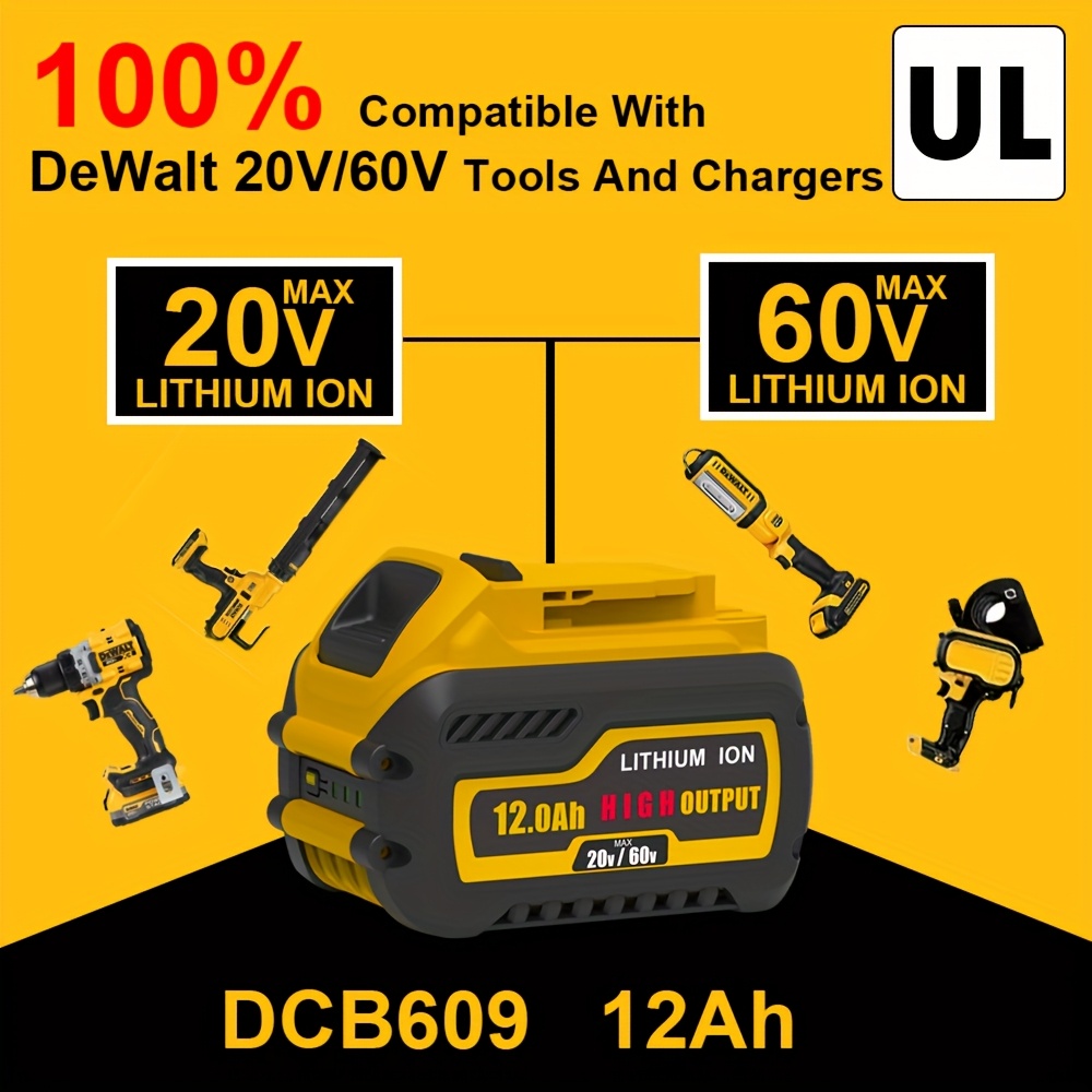 4/2/1 Pack 12.0Ah 20V/60V Replace For DeWalt DCB606 DCB609 DCB612 DCB606-2 DCB60