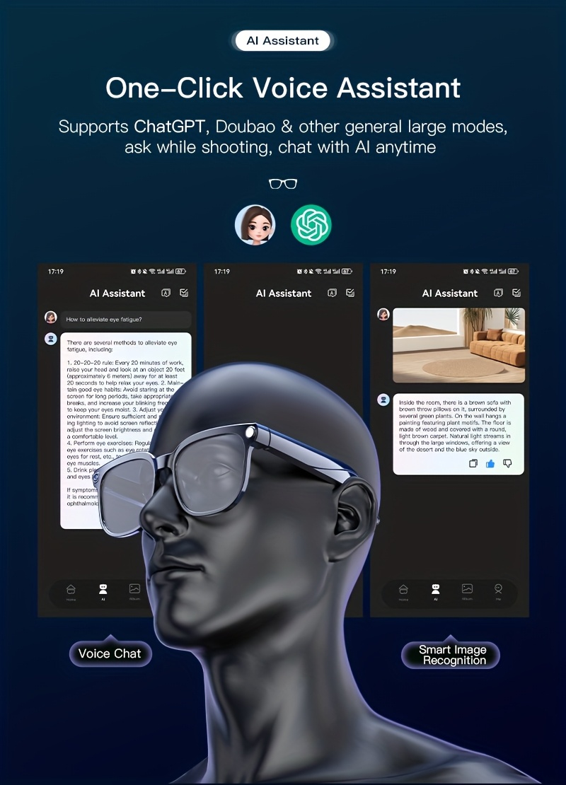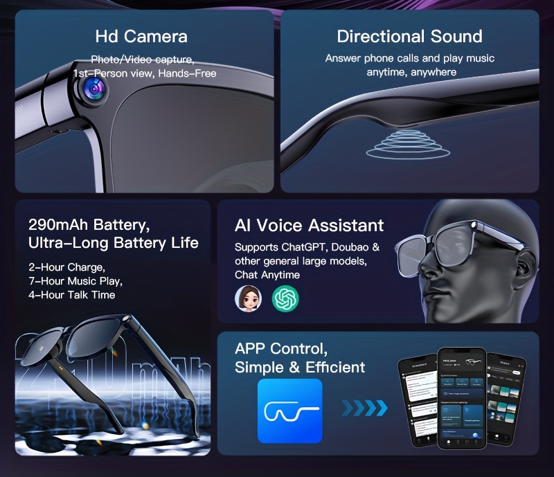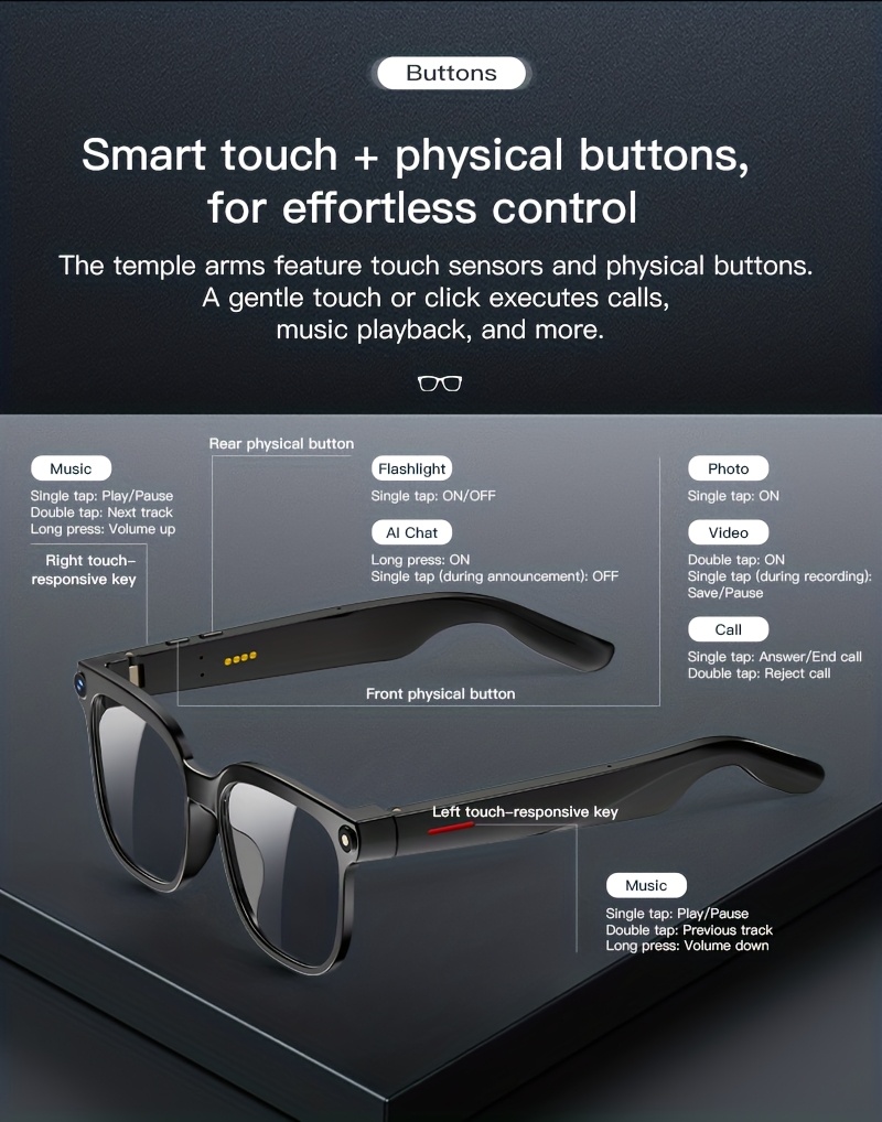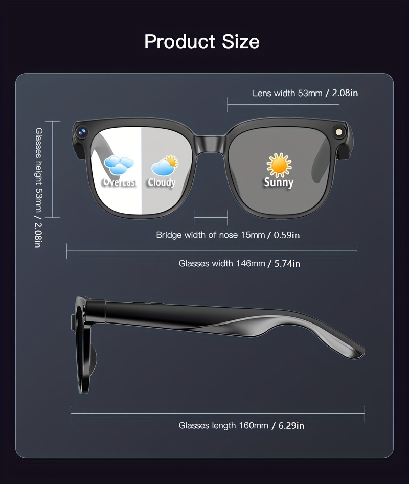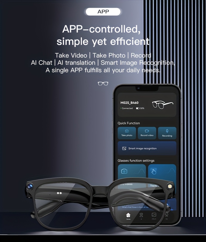 AI Camera Glasses, Video/audio Recording Translation, Wireless Call Fashion Glas