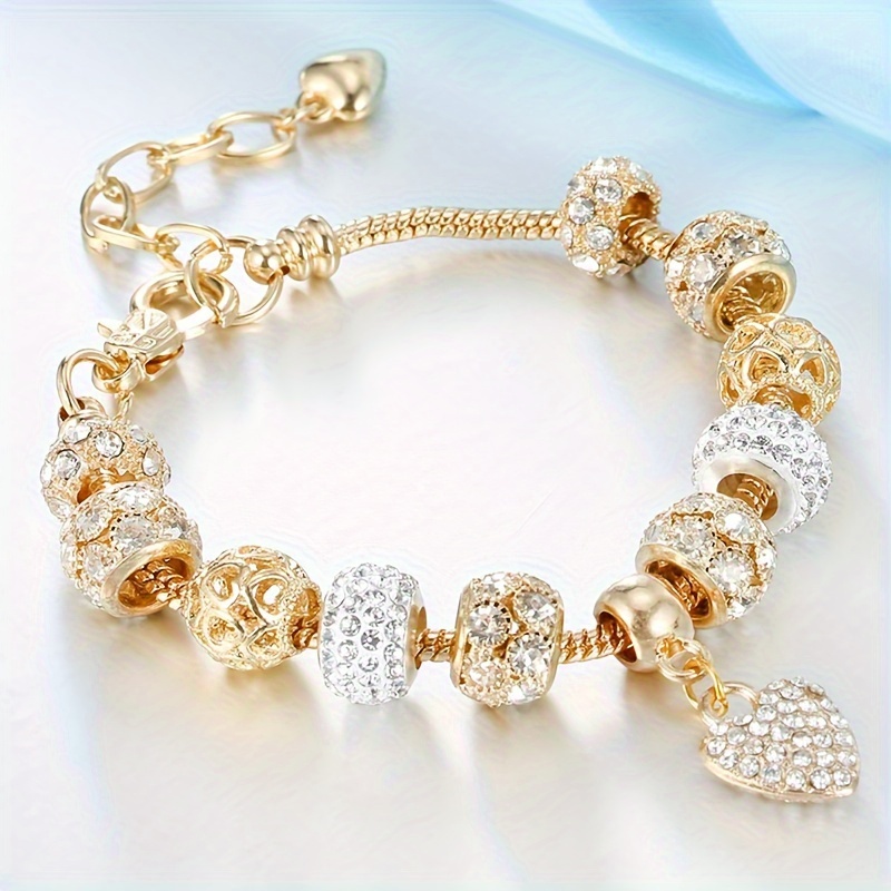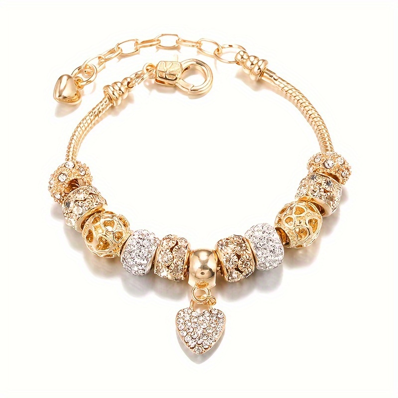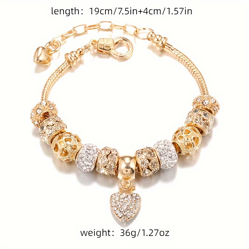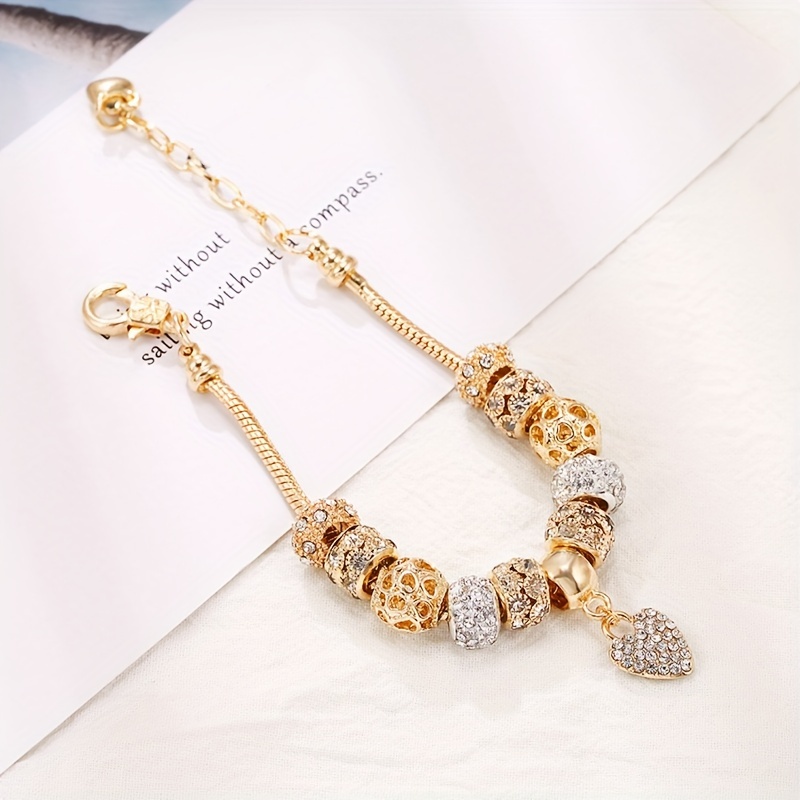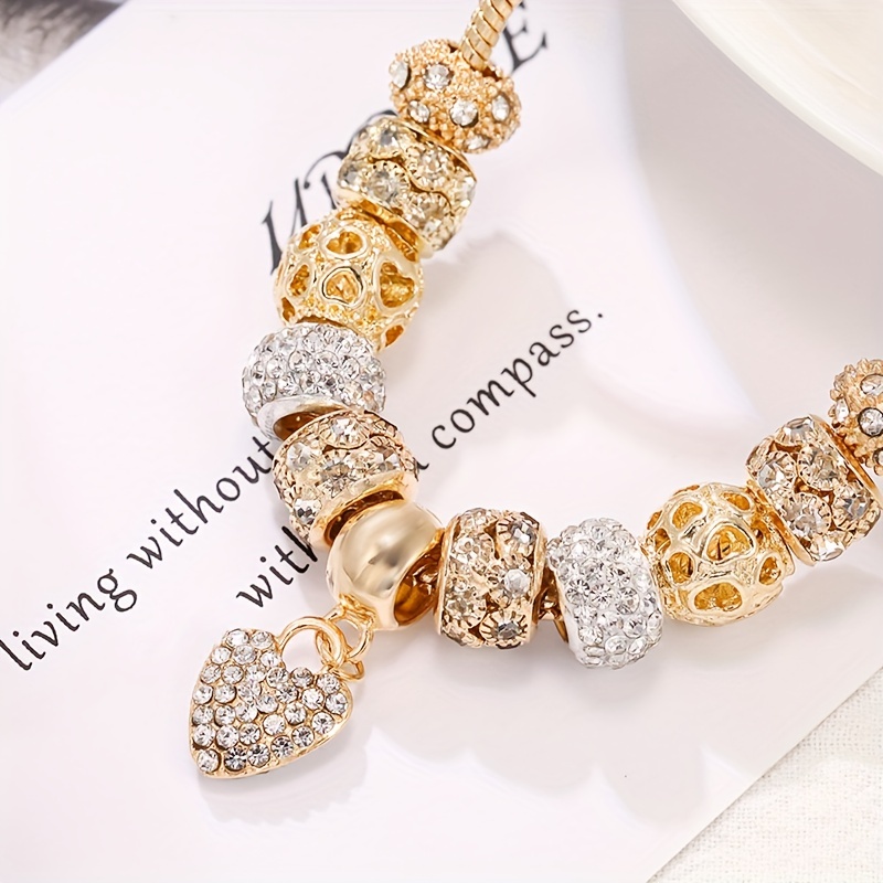 Dazzling DIY Alloy Heart Charm Bracelet - Large Hole Beads, Golden Beaded, Simpl