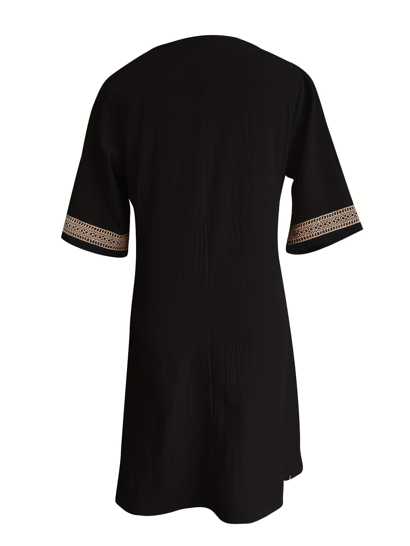 · Elegant Design: Guipure lace detailing adds a touch of sophistication to this dress