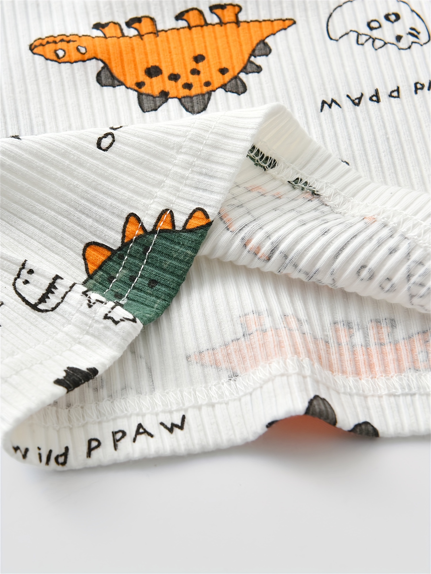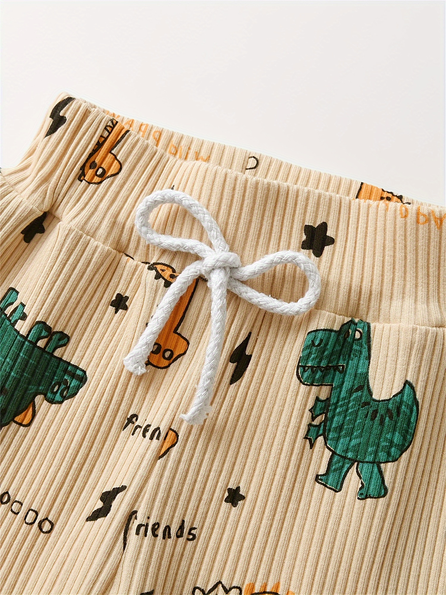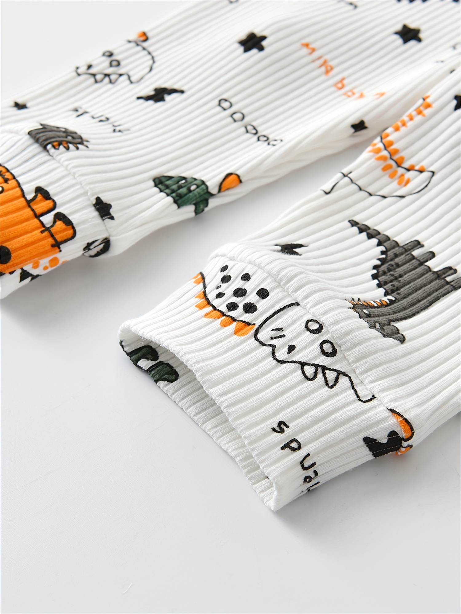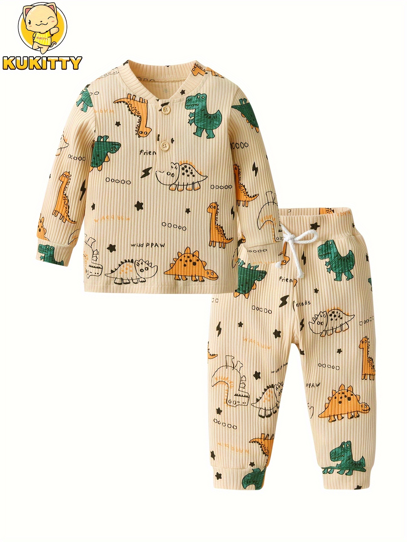 KuKitty Baby Boy Clothes Infant Dinosaur Print Long Sleeve Ribbed Tops Pants Out