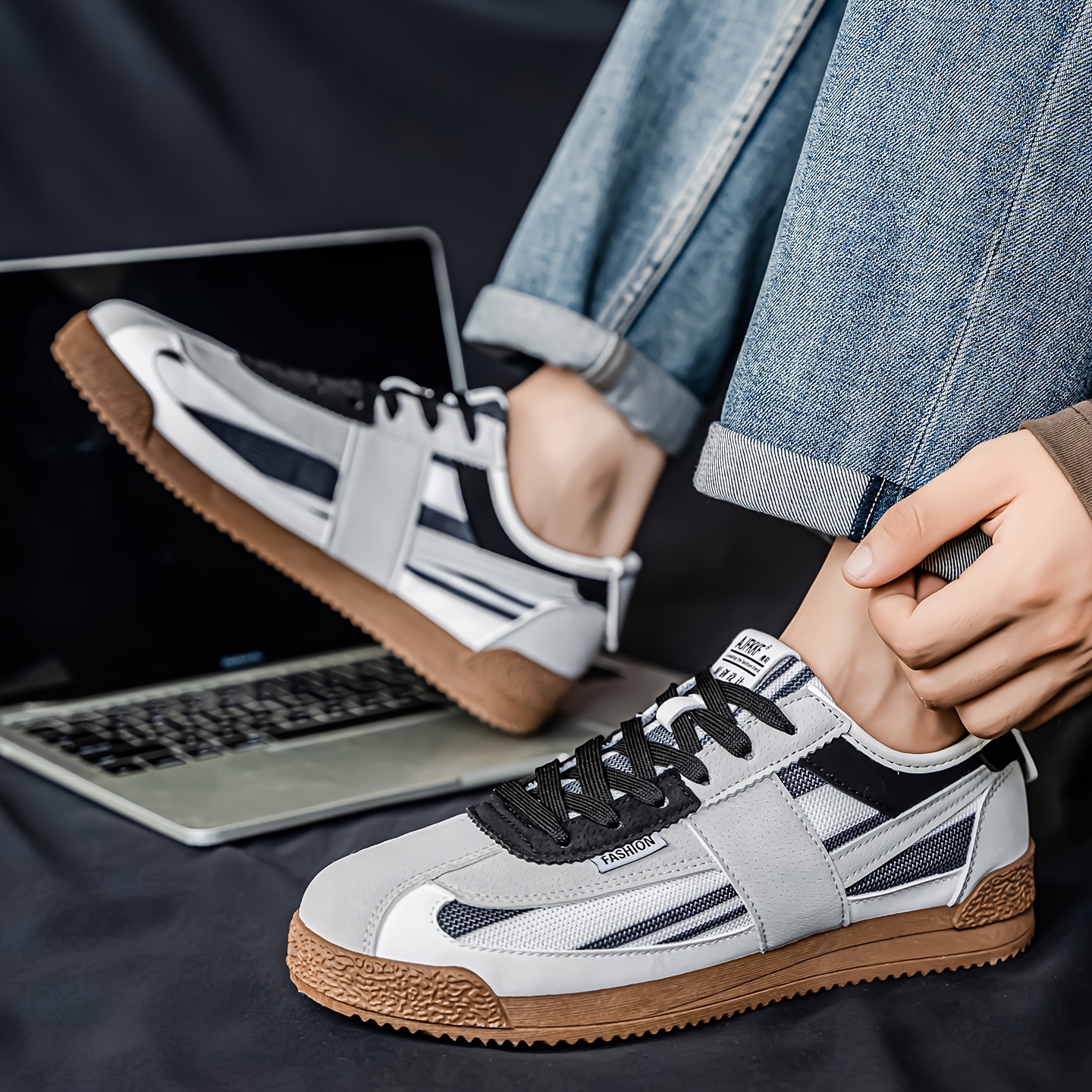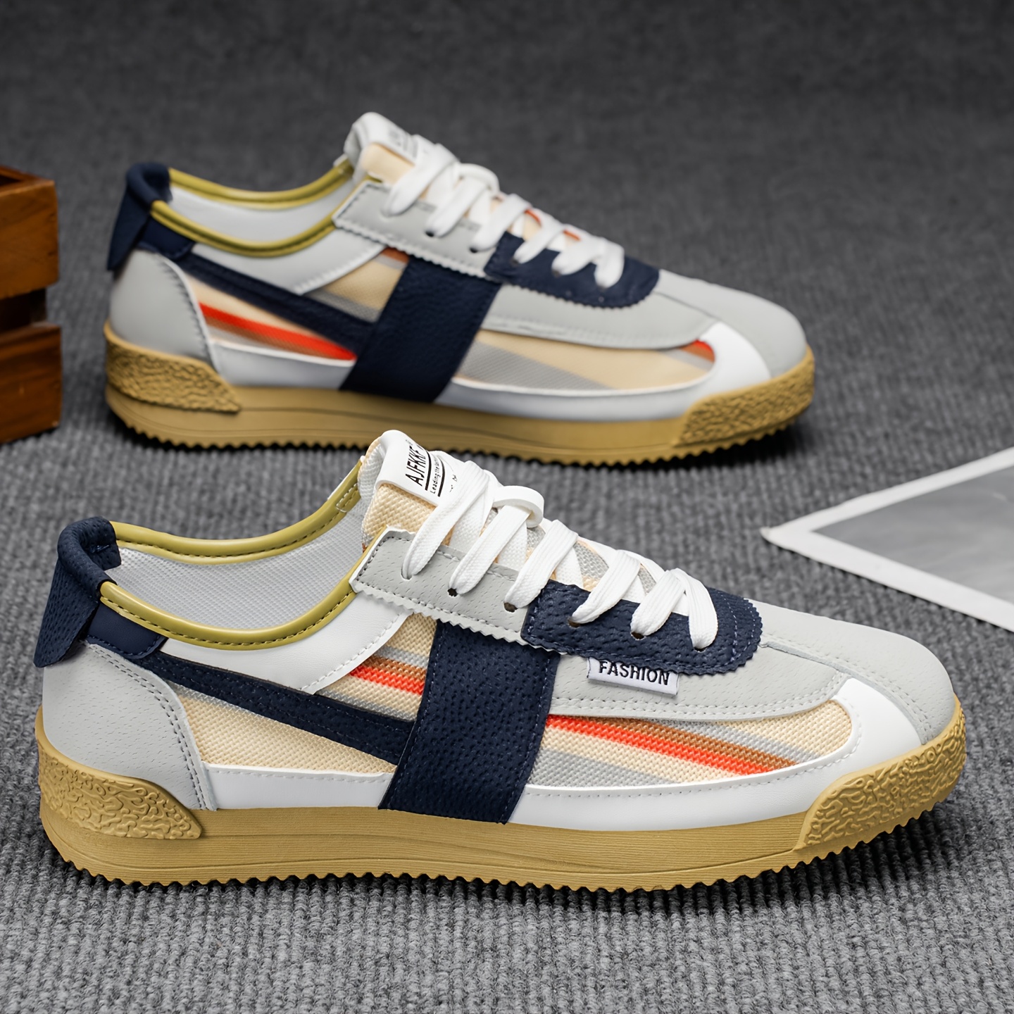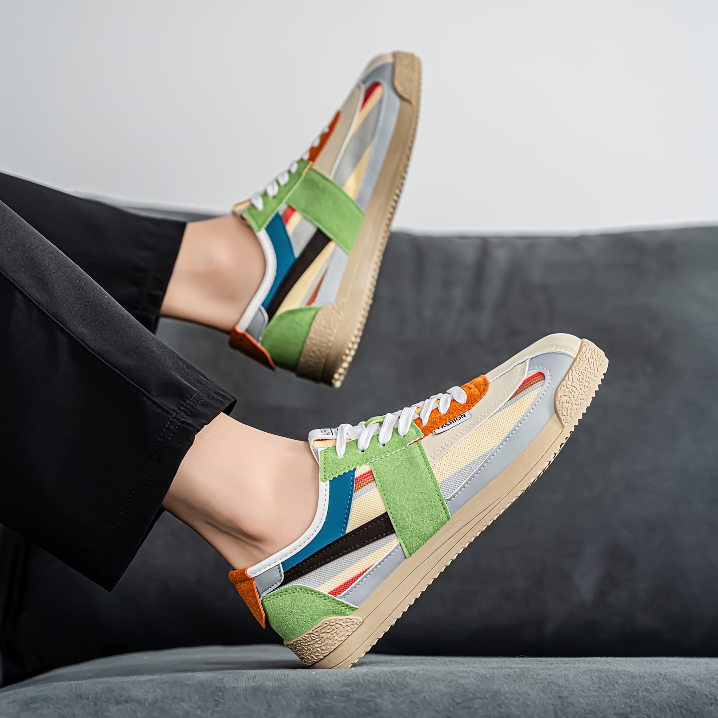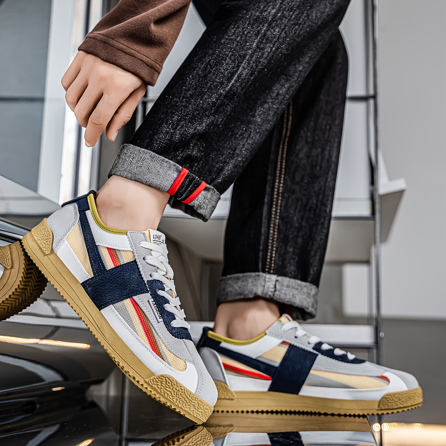 Men'S Lace-Up Sneakers with a Color-Block Striped Design, Offering Great Comfort