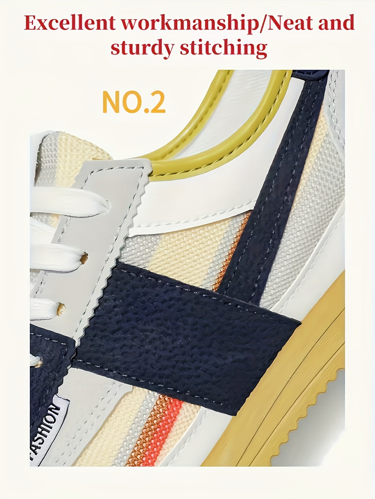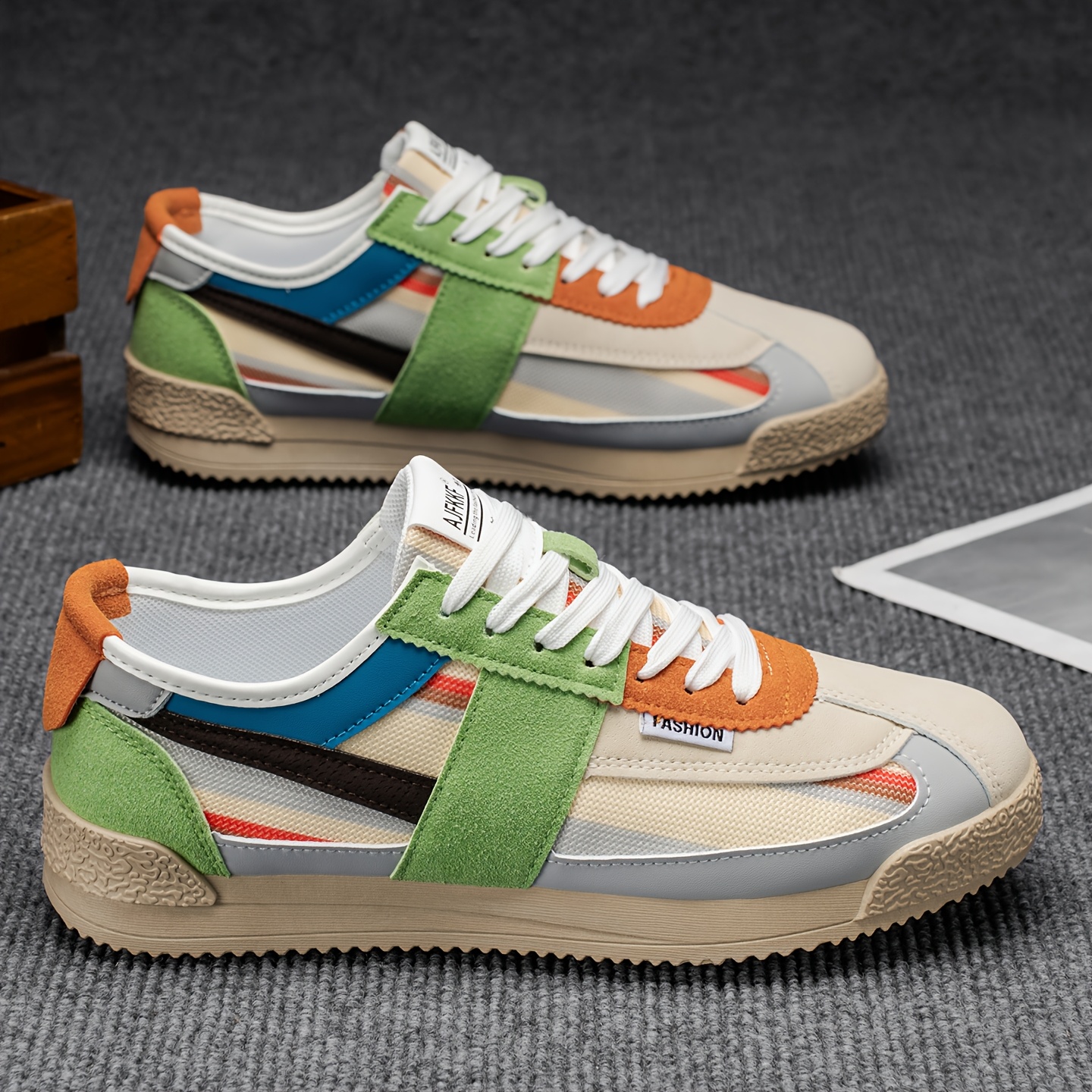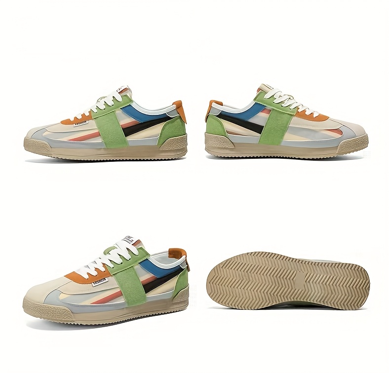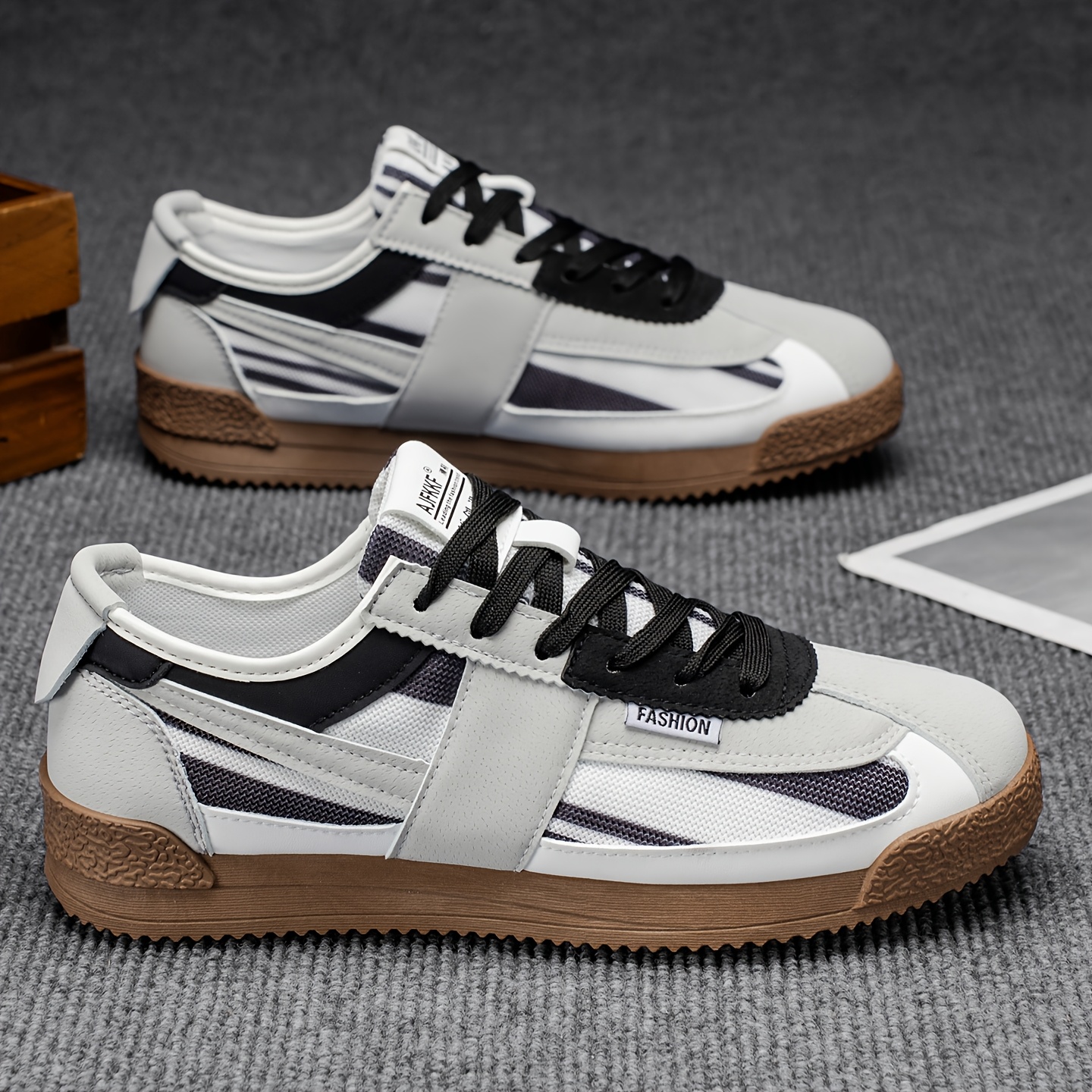 Men'S Lace-Up Sneakers with a Color-Block Striped Design, Offering Great Comfort