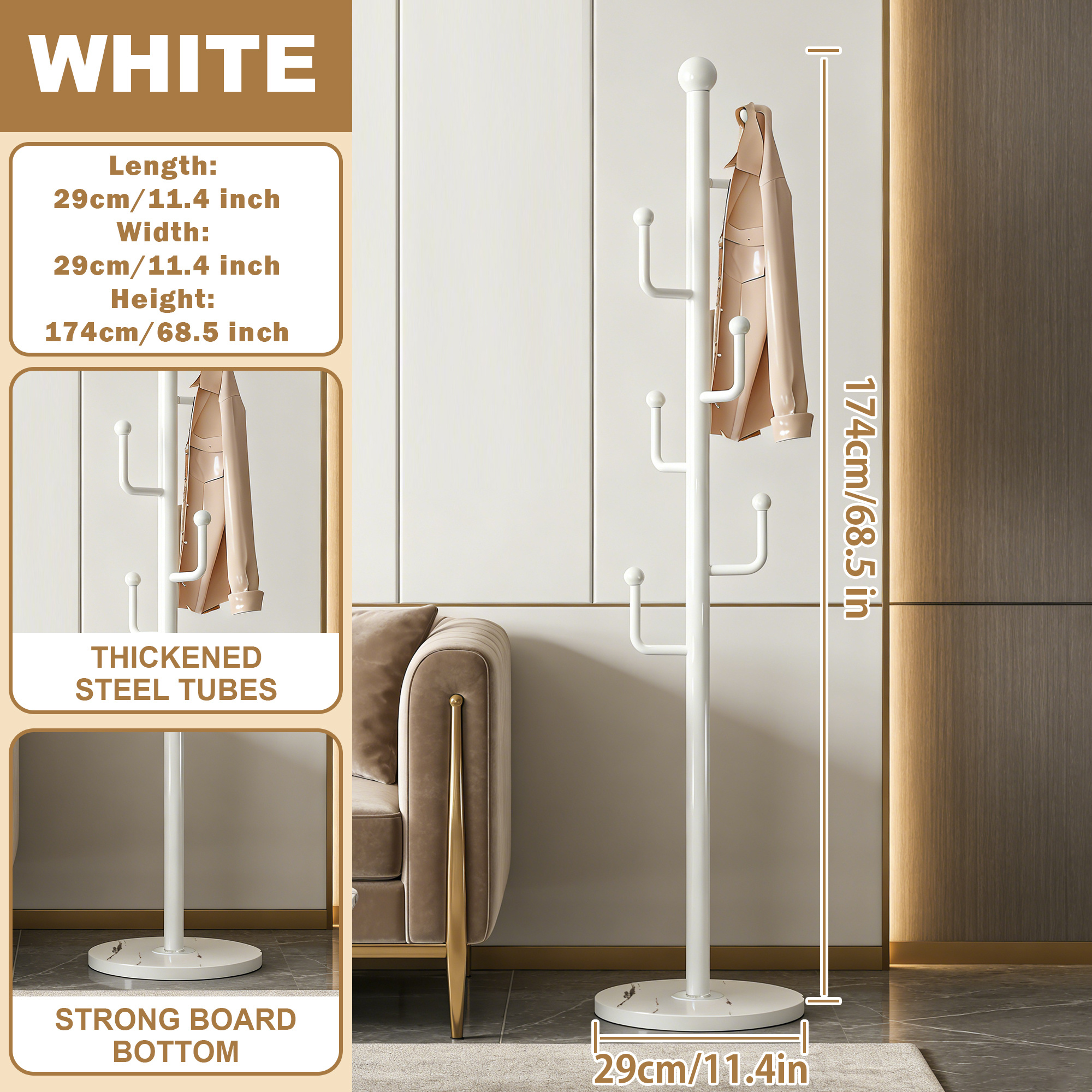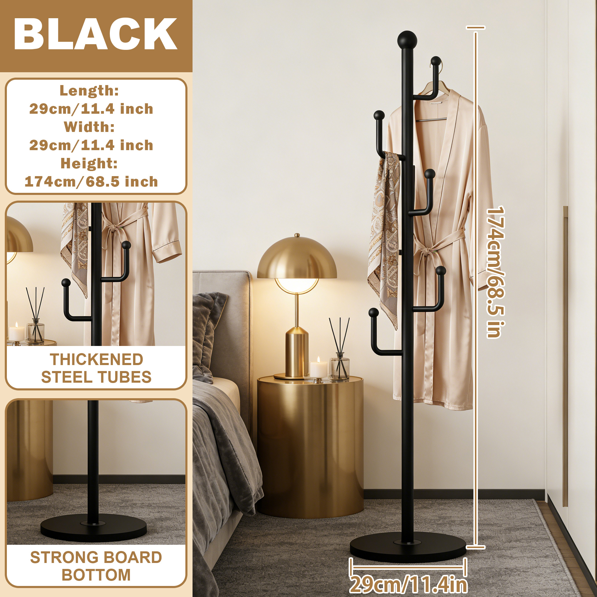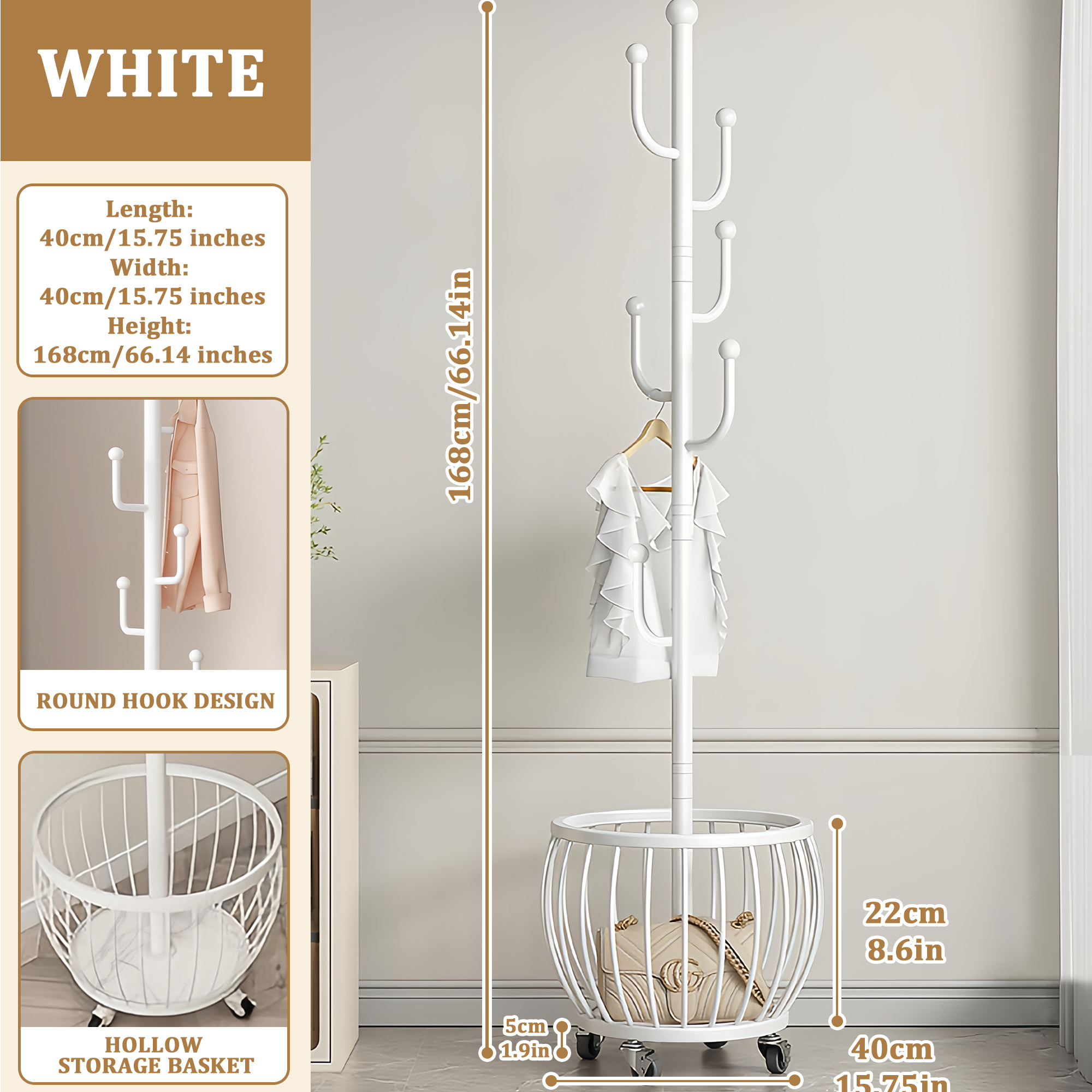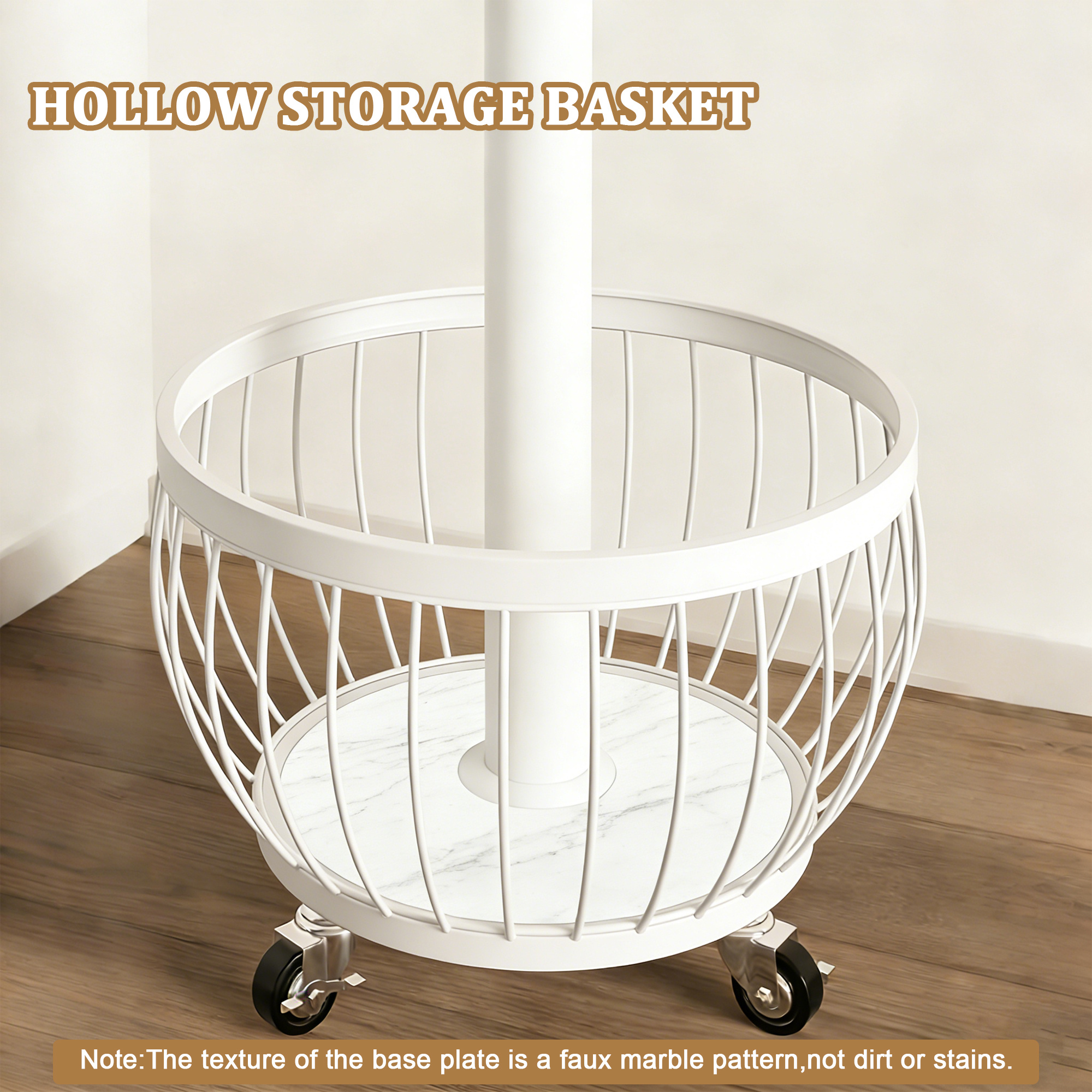 The Modern Metal Coat Rack with Storage Basket is a versatile and stylish solution for organizing your clothes and accessories. Featuring a durable metal frame, this coat rack ensures stability and longevity. The rotatable design provide easy access and organization, making it perfect for use in bedrooms, living rooms, and entryways.