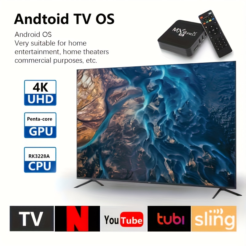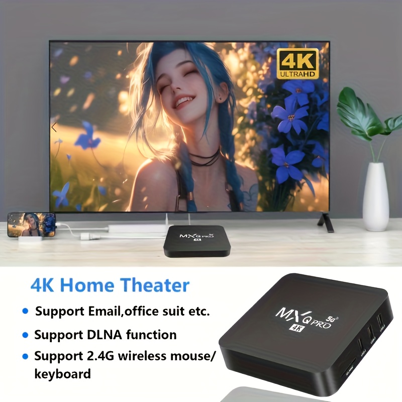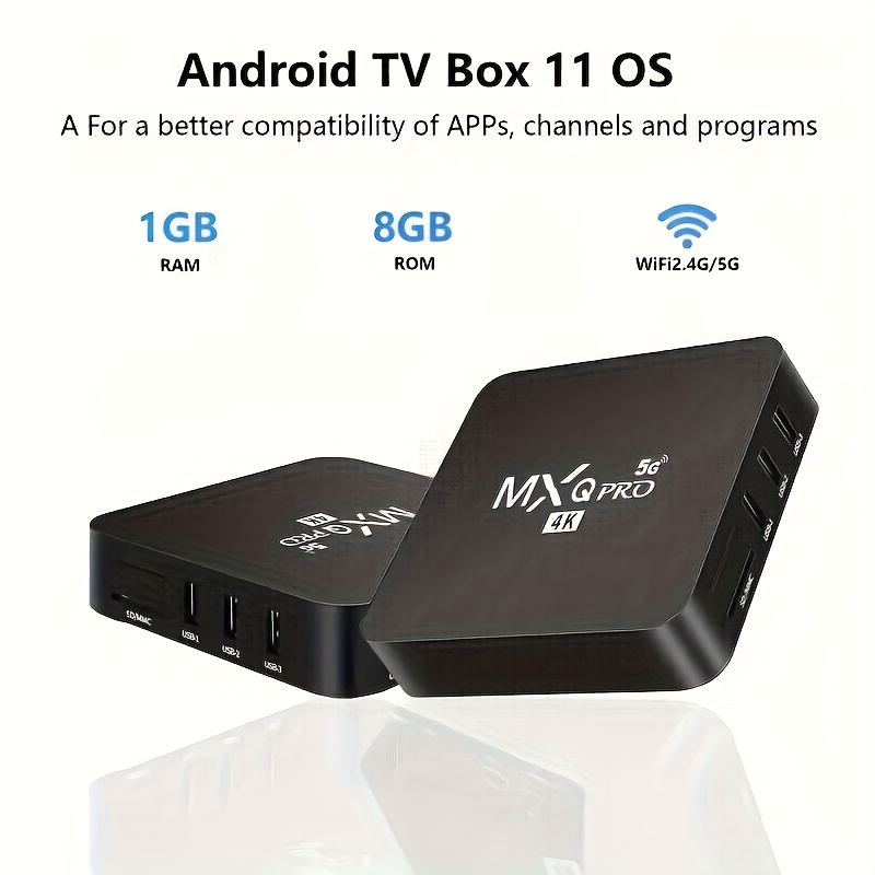 MXQ TV Box 1/8GB Memory Upgrade Option, Supports 4K, 2.4GHz WiFi, Compact Design