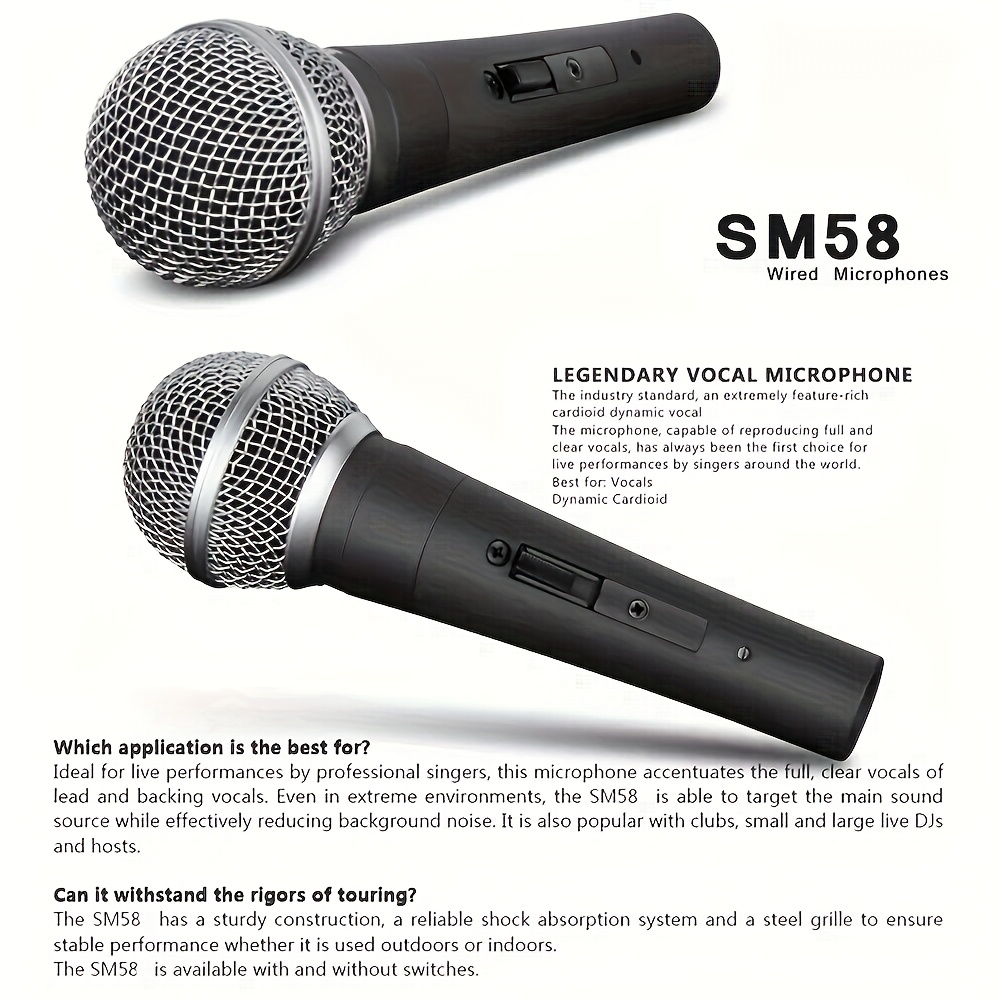 Features and highlights:Experience unparalleled sound quality and durability with the SM58 dynamic microphone, making it ideal for live performances, studio recording, and public speaking. This multi-functional microphone excels in capturing clear human voices, making it the top choice for both professionals and enthusiasts