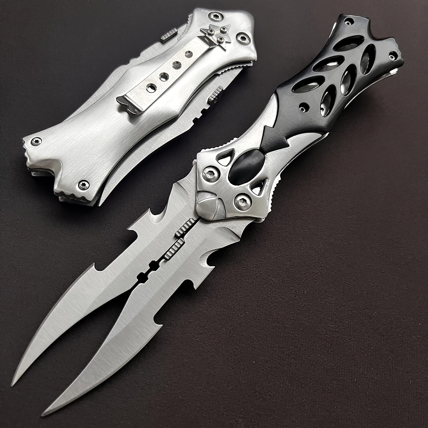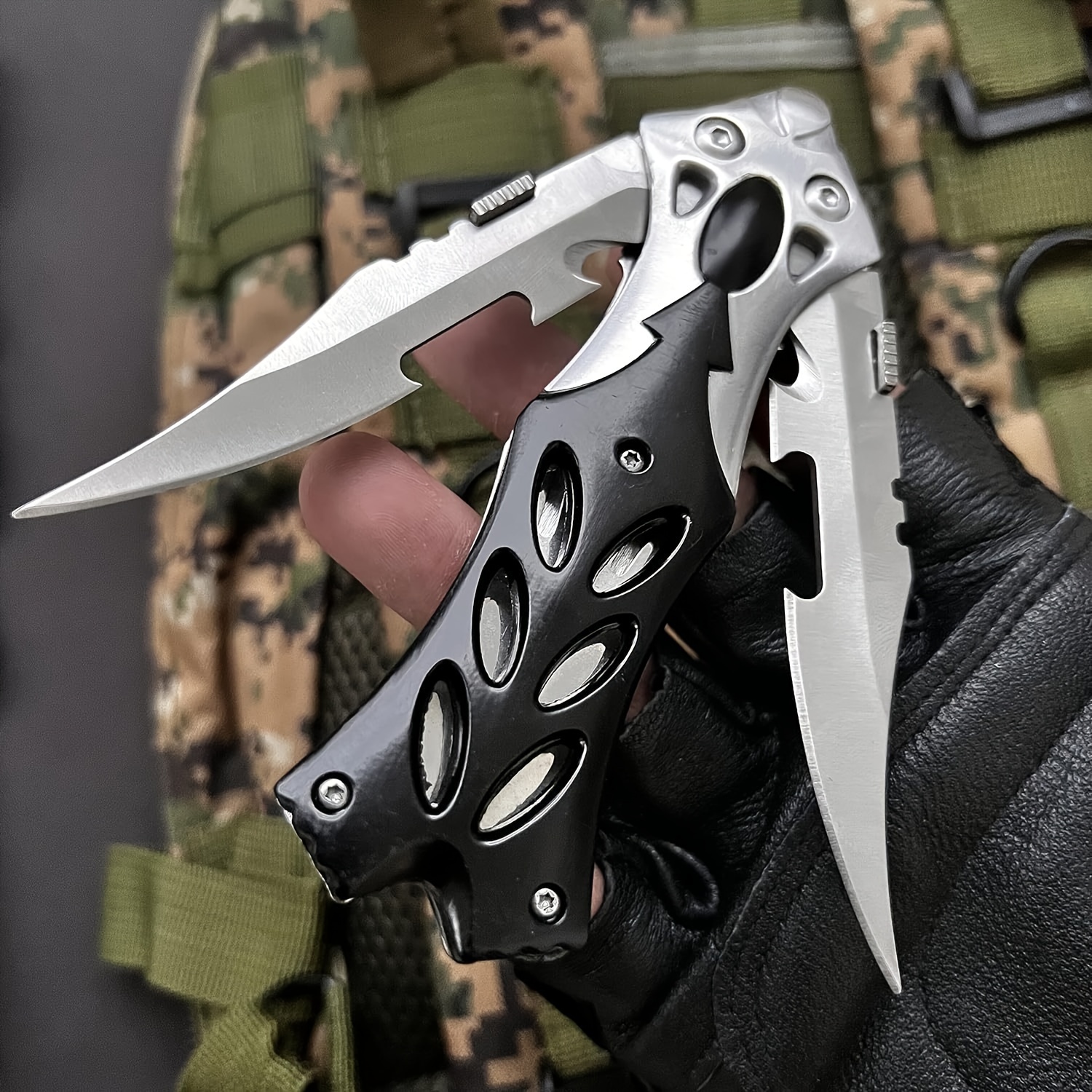 Reliable: This knife features a liner lock and quick opening mechanism, beautifully designed for one-handed operation. The folding blade tactical knife is equipped with an automatic locking system when fully extended to prevent accidental closure, ensuring secure and safe carrying. Size: Overall length is 8.5 inches, blade length is 3.5 inches, closed length is 5 inches, weight is 4.7oz. The knife handle is made of high-quality aviation aluminum, and the blade is crafted from durable 440C stainless steel with a hardness of 59HRC. Convenient for carrying.