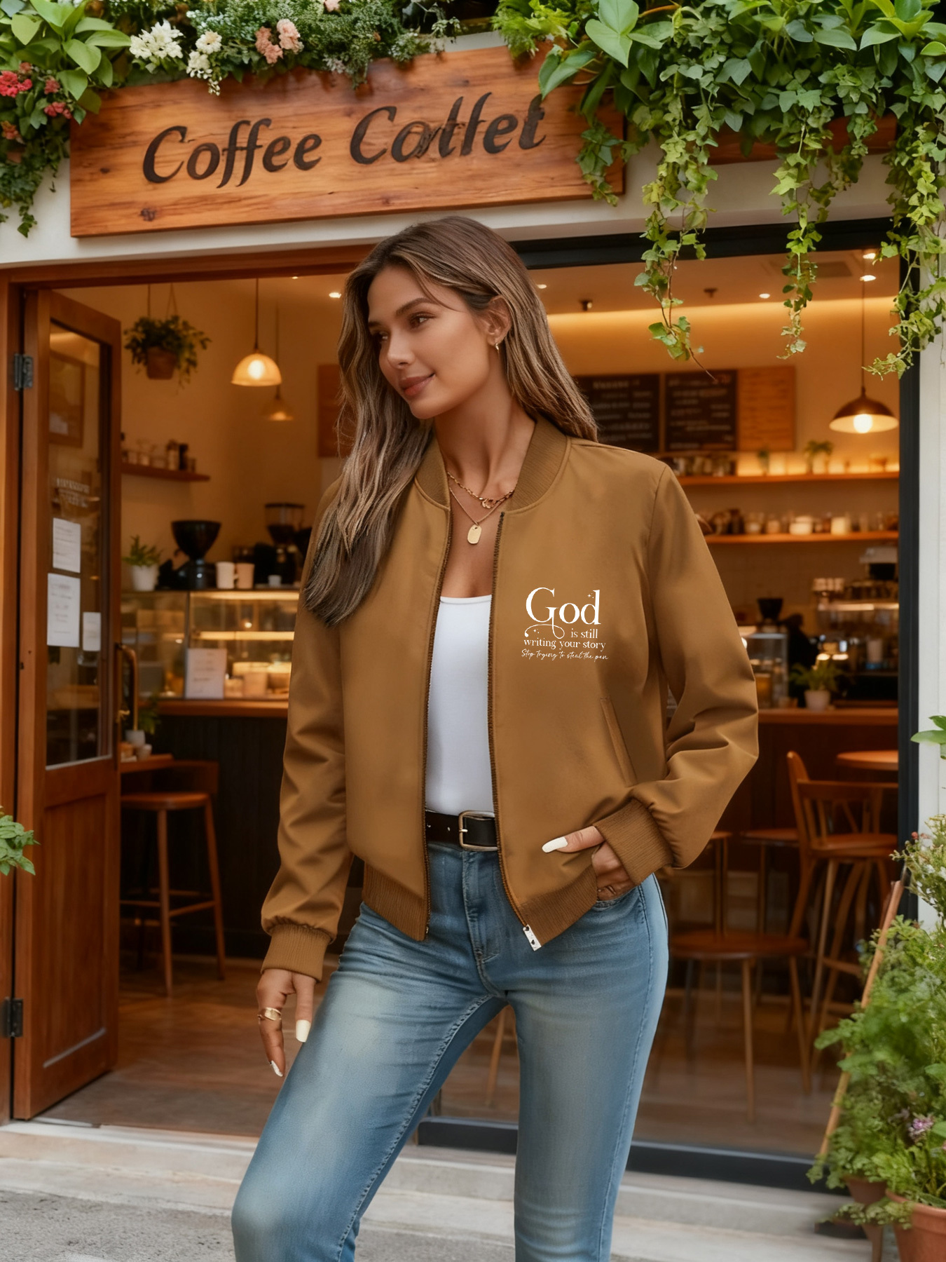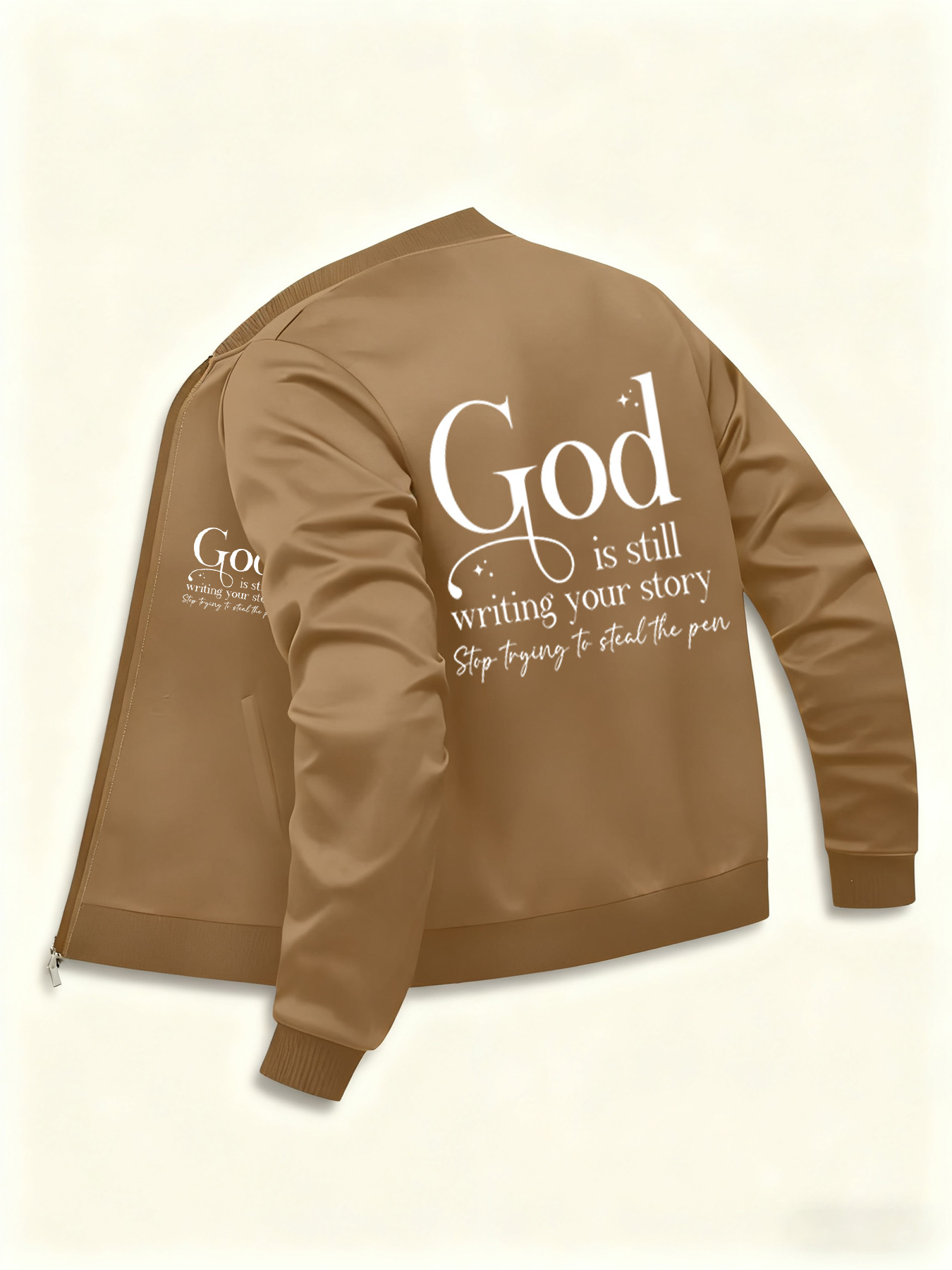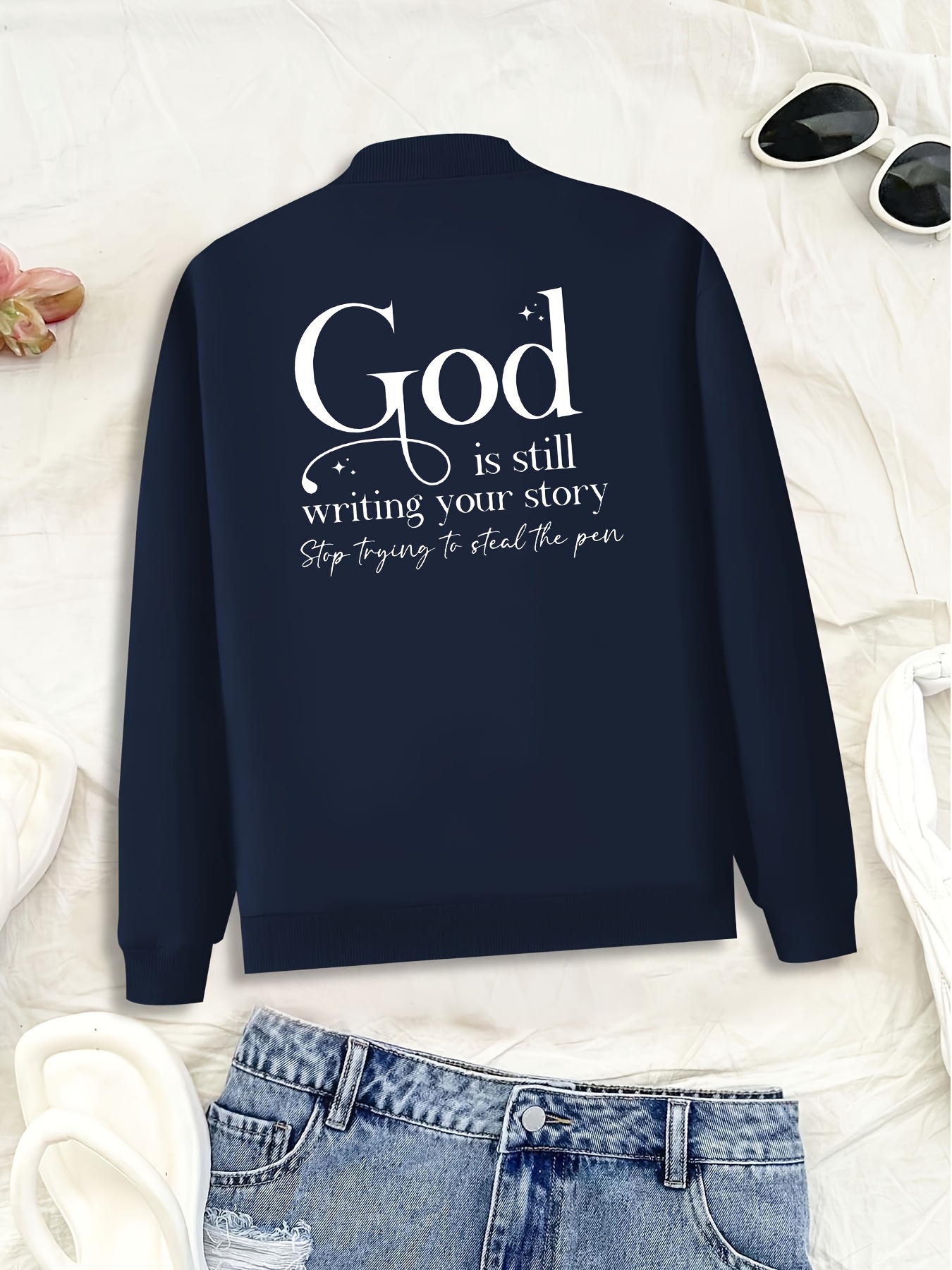 Women's Casual Comfortable Double Print Jacket, Long Sleeve Zipper Stand Collar