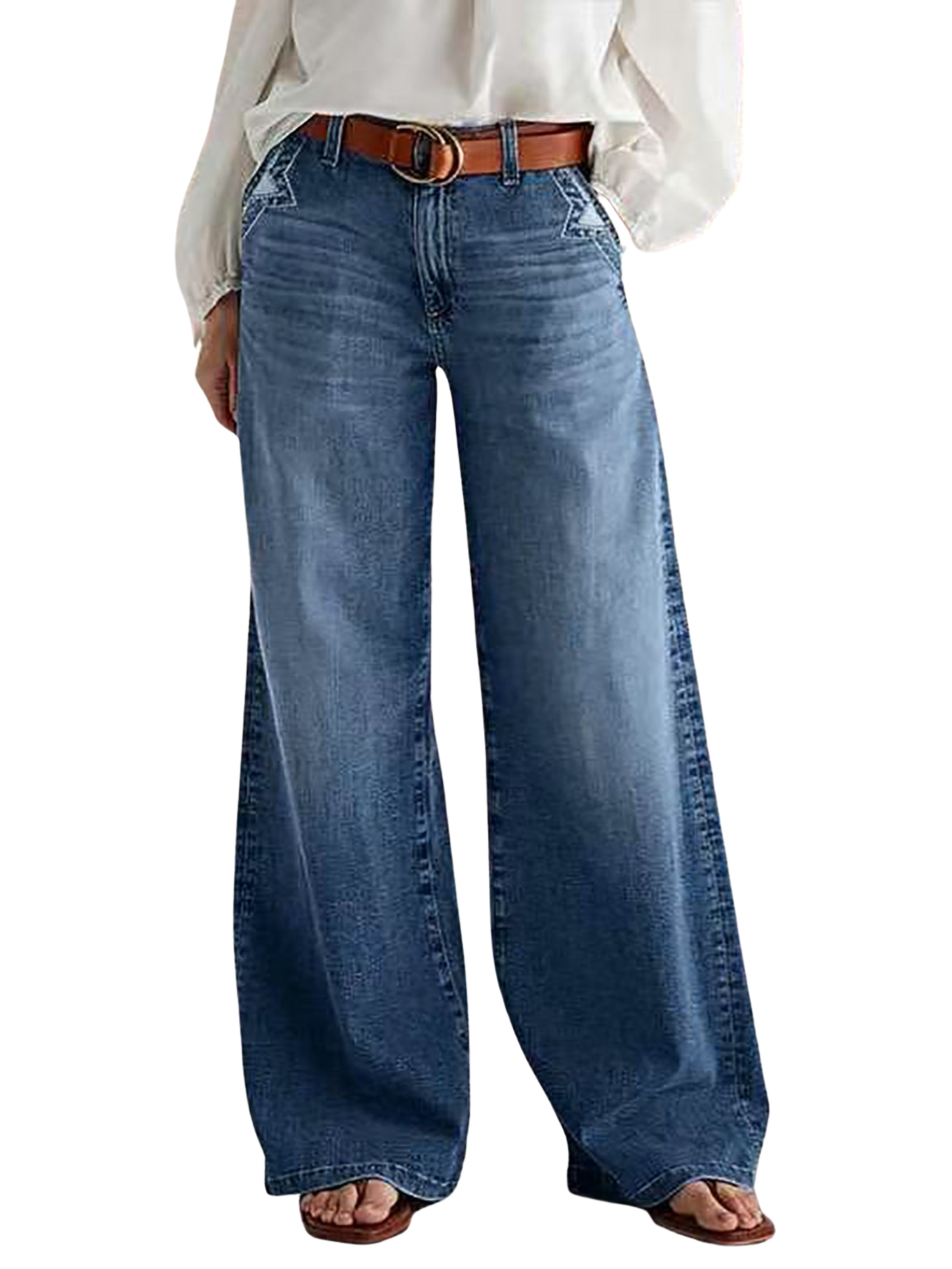 · Featuring a vintage light wash with solid color pattern and gradient detailing, complemented by embroidered elements.