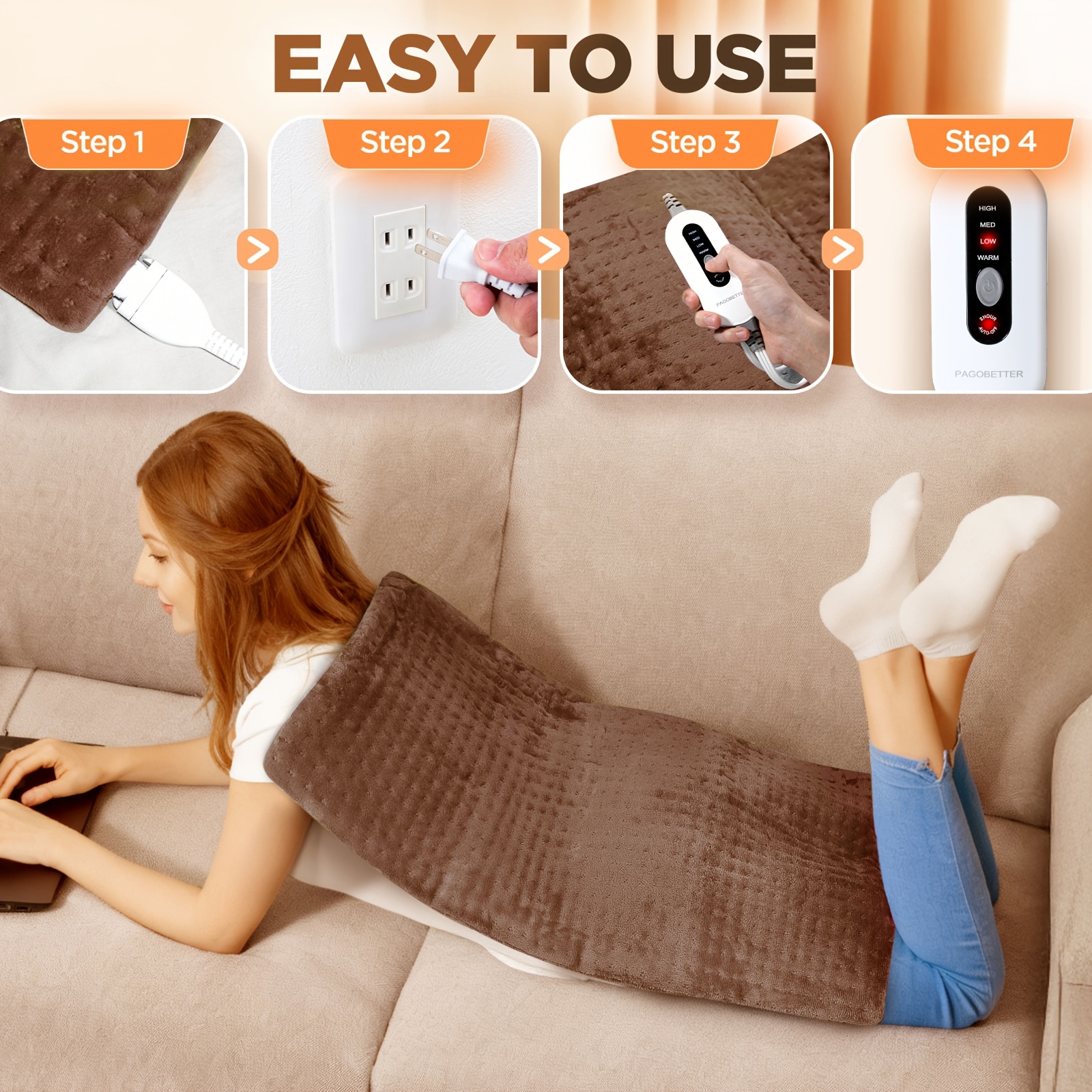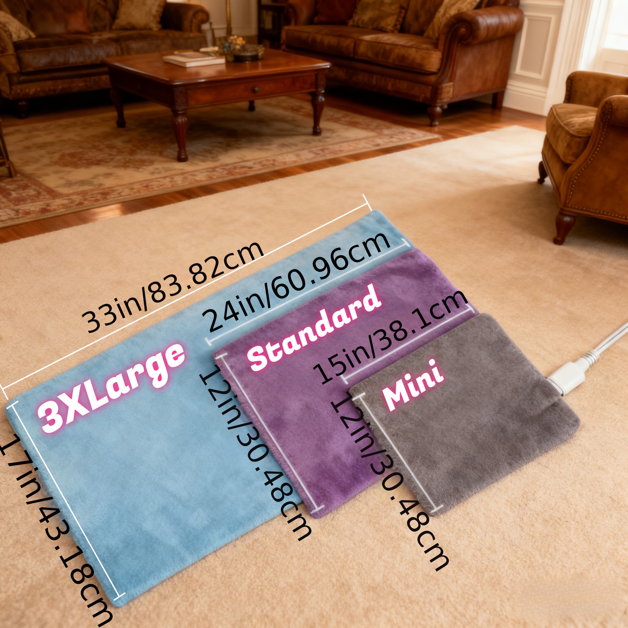 XXXL Heating Pad for Back 17x33in / 12x24in / 12x15in, Fast Heating Ultra Soft F